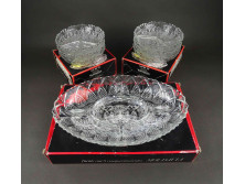 Aranyozott szélű üveg süteményes készlet. Rajta tölgyfalevél, makk, szarvas, fajdkakas, vaddisznó díszítéssel.
