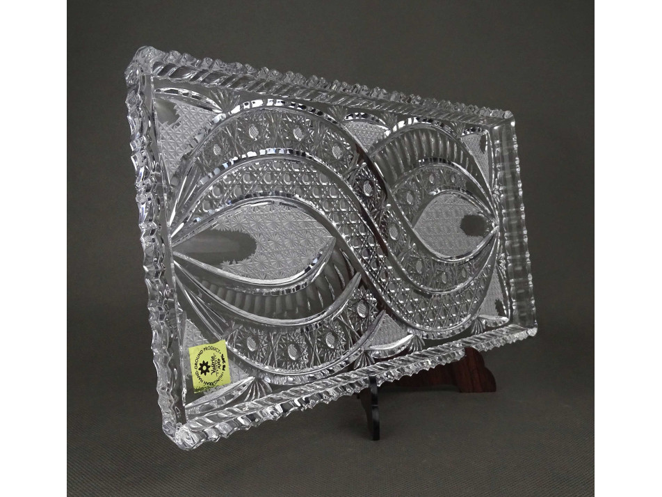 Hibátlan állapotú, nagy méretű, vastagfalú, gazdagon csiszolt Ajkai kristály kínáló tál, tálca.