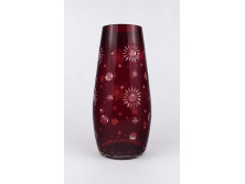 Hibátlan állapotú, formatervezett, vastagfalú üveg váza. Kék színűre színezett, szögletes formájú csiszolt üveg.