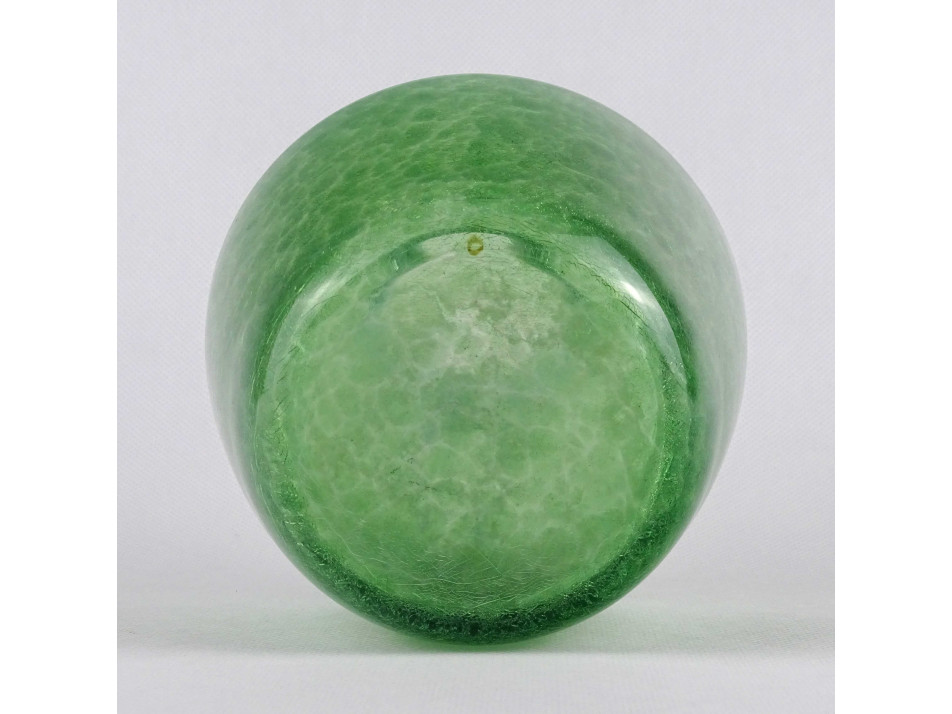 Irizáló zöld karcagi fátyolüveg váza 13.5 cm