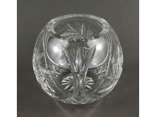 Hibátlan állapotú, csiszolatokkal gazdagon díszített, vastag falú üveg váza, díszváza.