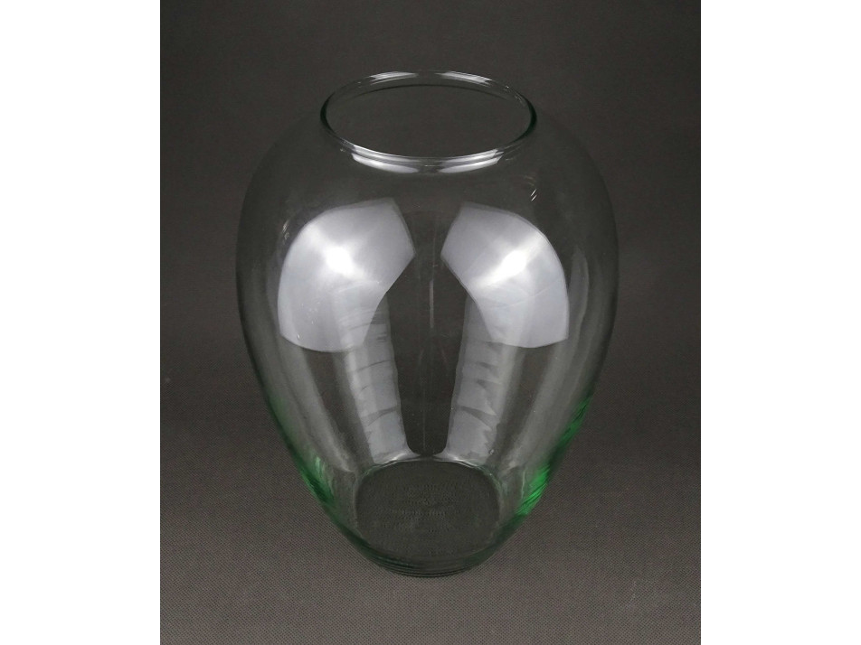 Nagyméretű, vékony falú, öblös, design üveg váza, virág váza.
