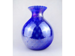 Régi csigalábas rózsaszín belülről bordázott üveg gömbváza 16.7 cm