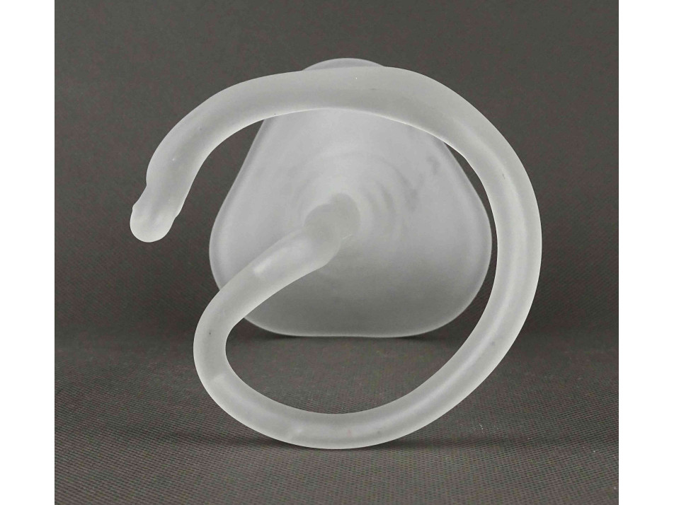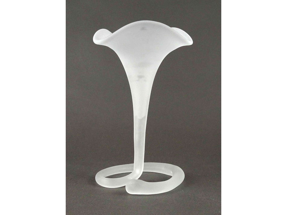 Hibátlan állapotú, karcsú, elegáns, spirális alakban tekeredő talpú, fújt opál üveg váza, szálváza, design váza egy szál virág számára. A talp végén a fújt üveg szakításának nyoma látható.