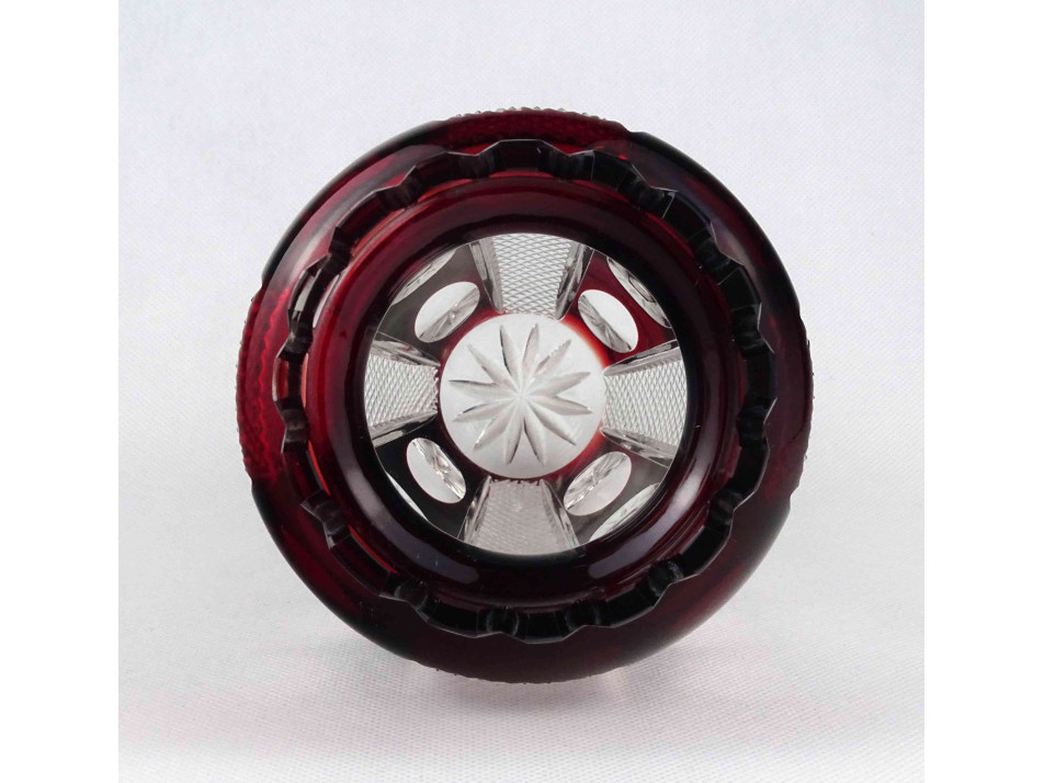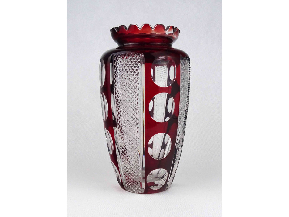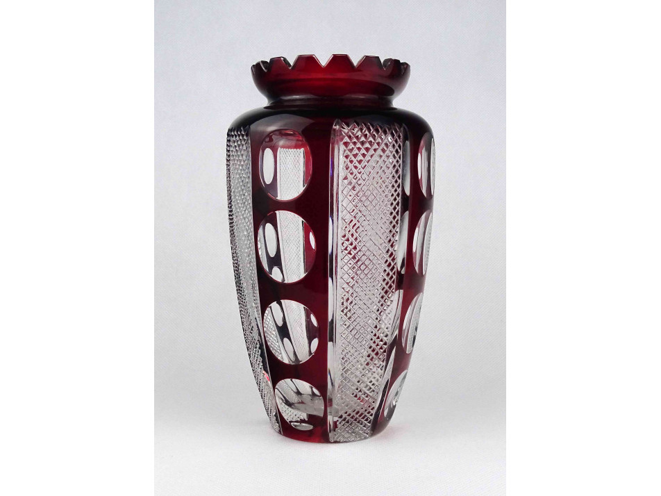 Régi nagyméretű bordó csiszolt kristály váza 21.5 cm