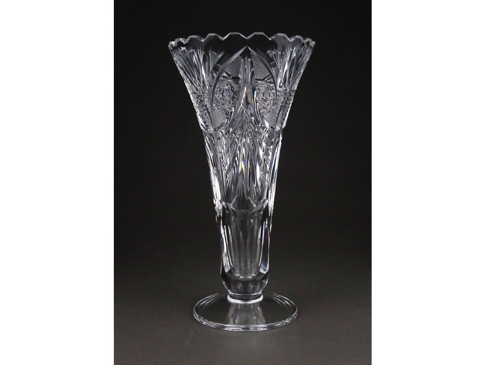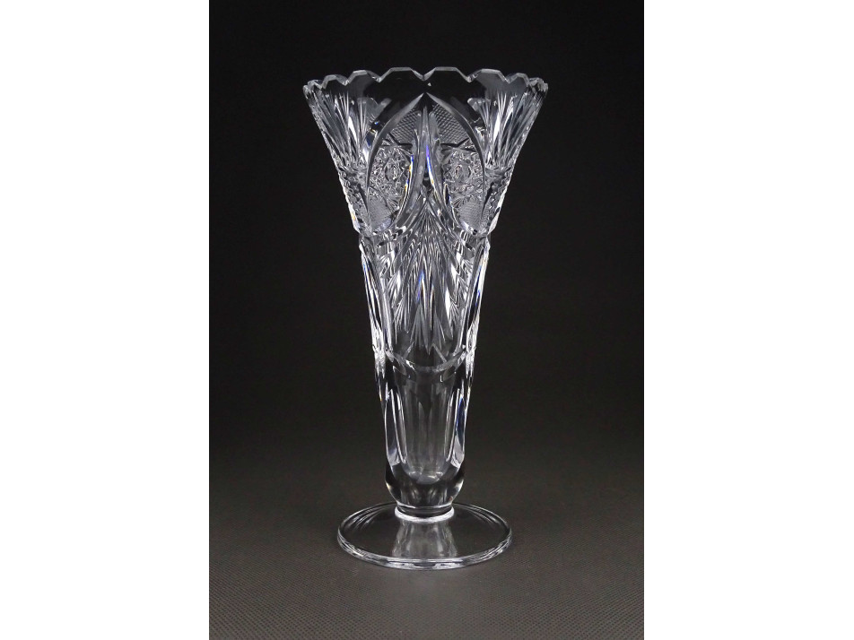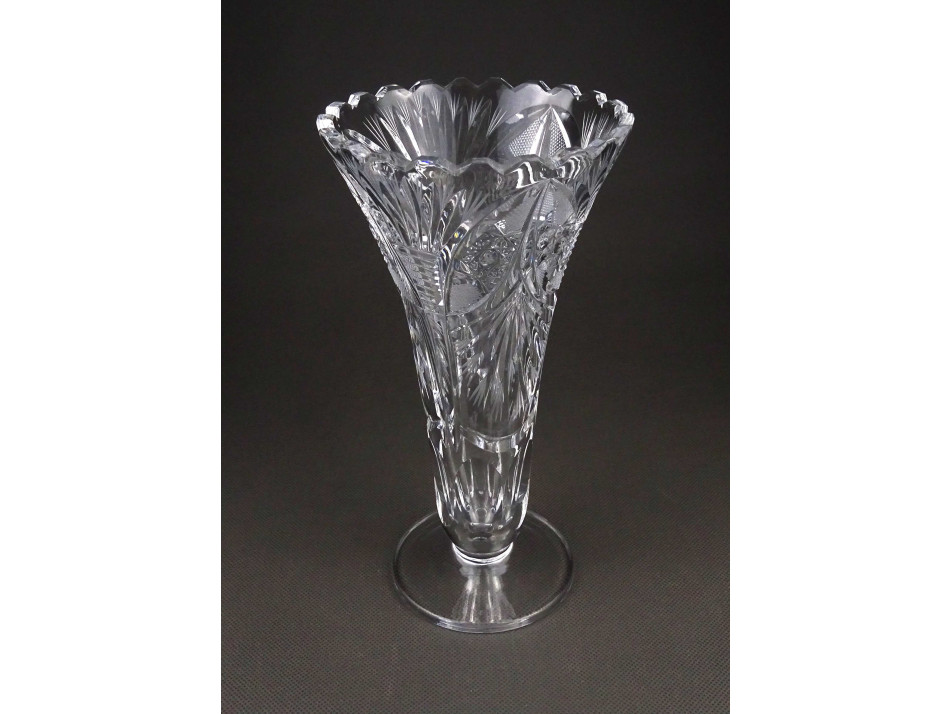 Régi csiszolt kristály talpas váza 21 cm