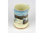 Antik - Gruss aus Alfdorf - feliratú kisméretű majolika korsó emlékkorsó 8.7 cm