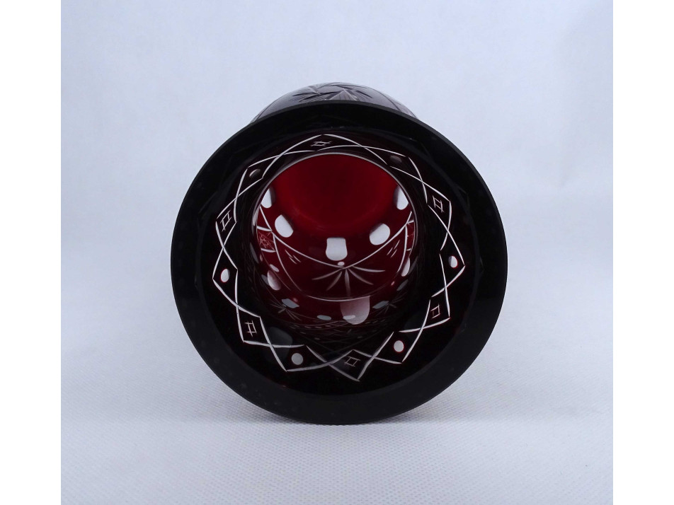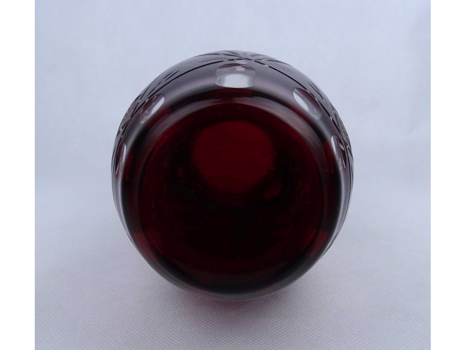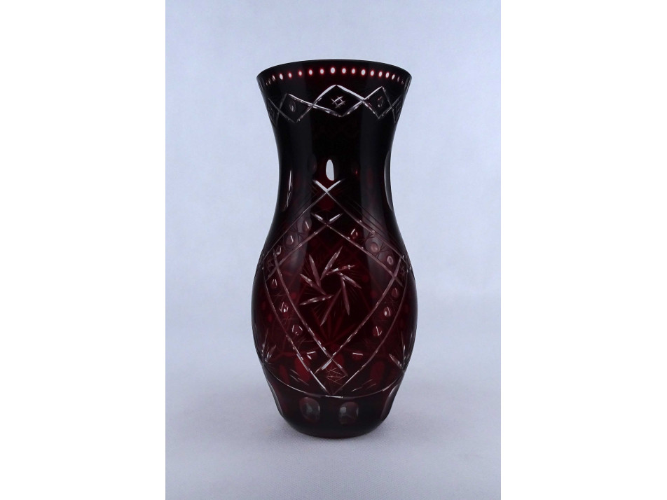 Bordóra színezett csiszolt kristály váza 26.7 cm
