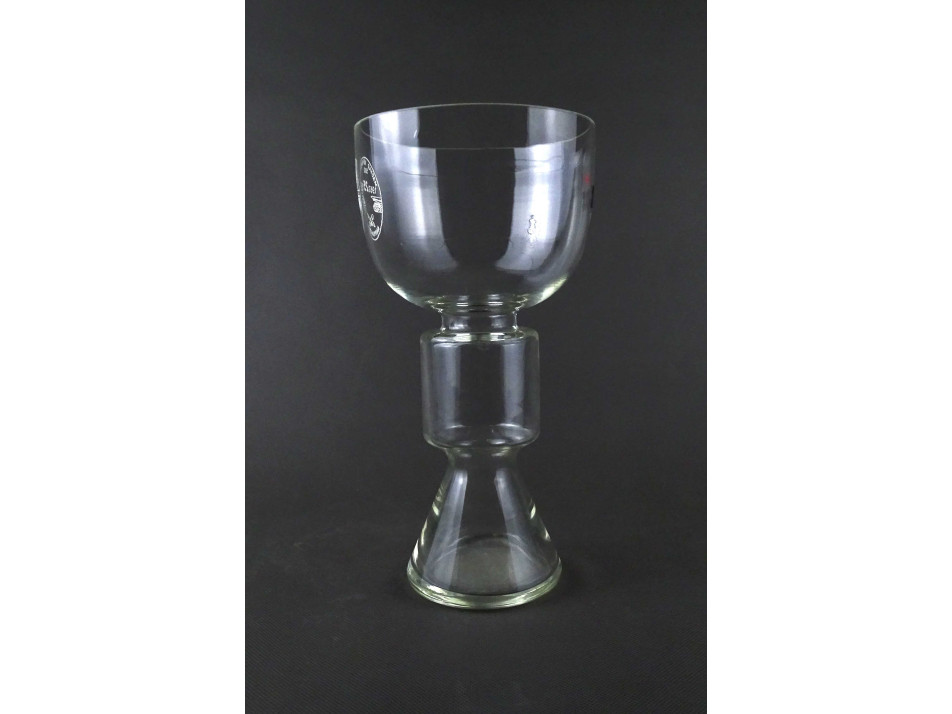 Régi, hibátlan állapotú, különleges alakú emlék váza, díszváza. Oldalán festett fehér embléma és emlékfelirat túloldalán márkajelzés látható.