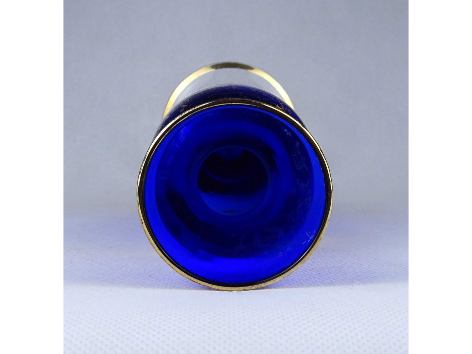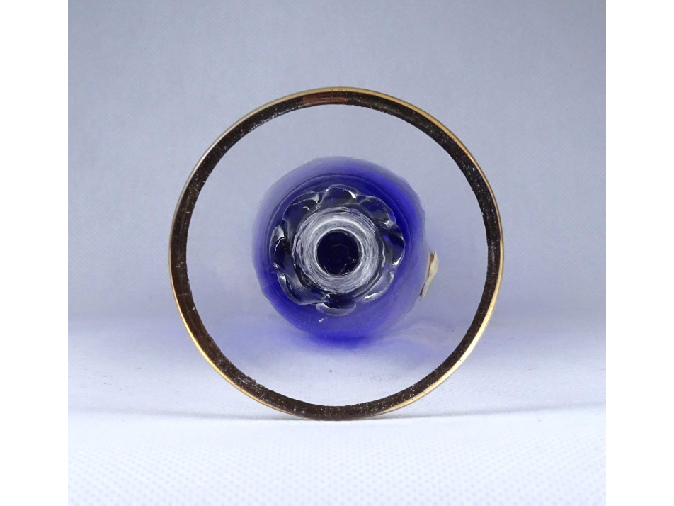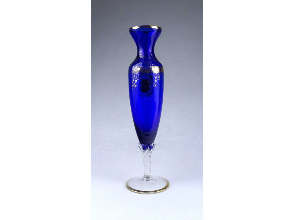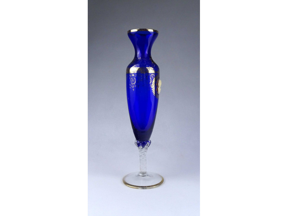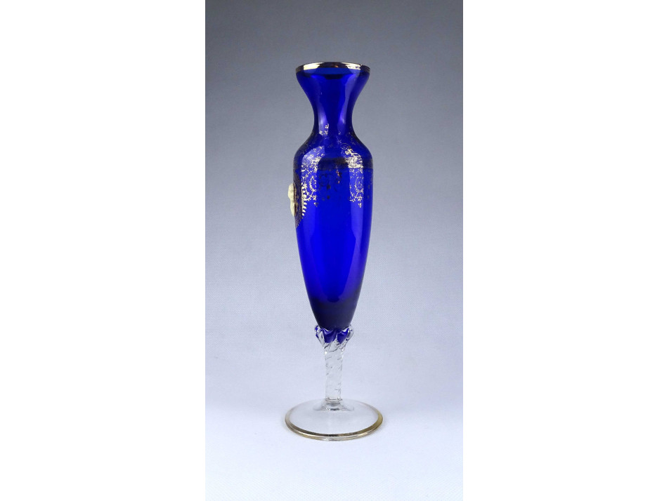 Antik mintval díszített aranyozott kobaltkék fújt üveg váza 28 cm