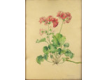 Muskátli virágokat ábrázoló akvarell festmény 42 x 29.5 cm