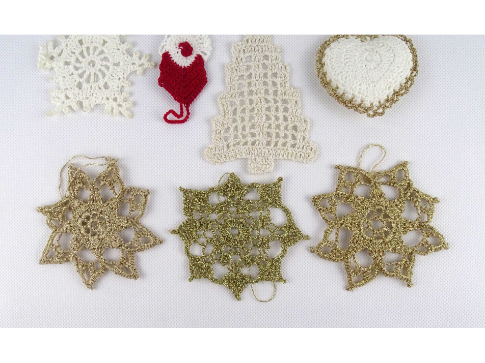 Régi horgolt csipke karácsonyfadísz csomag 11 darab