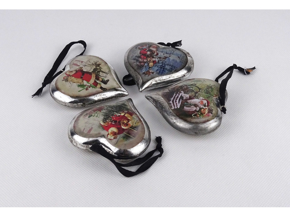 Régi ezüst színű szív alakú karácsonyfadísz csomag 4 darab