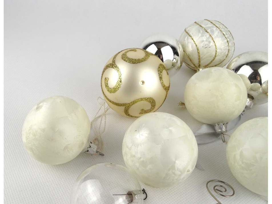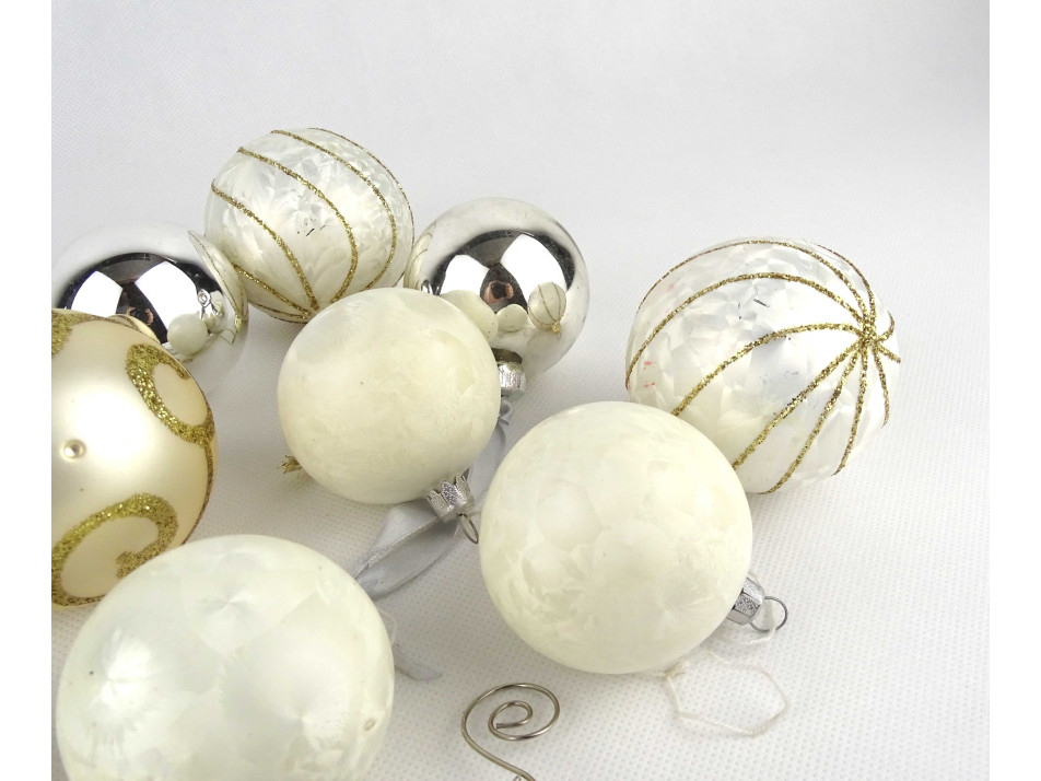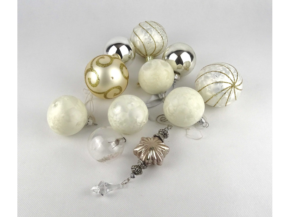 Régi ezüst és arany színű vegyes üveg karácsonyfadísz csomag 11 darab