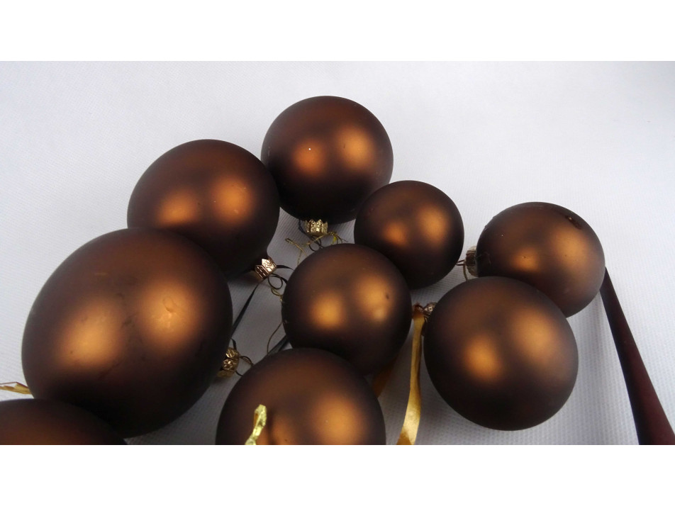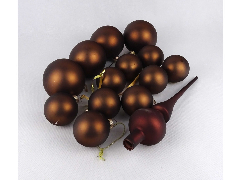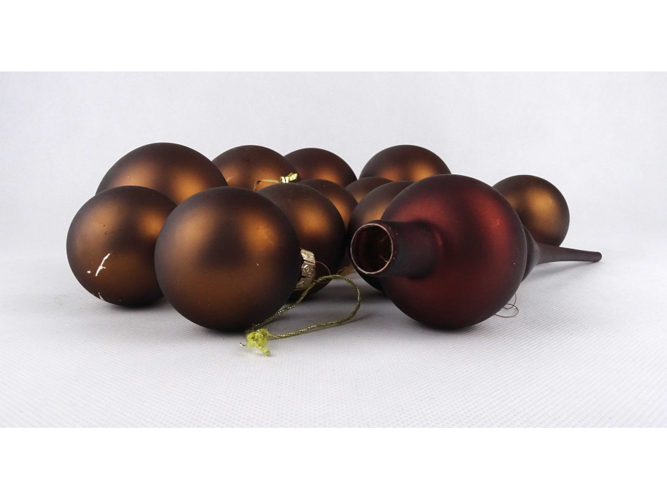 Régi, szép állapotú, óarany színű üveg karácsonyfadísz, üvegdísz csomag, 14 darab egyben.