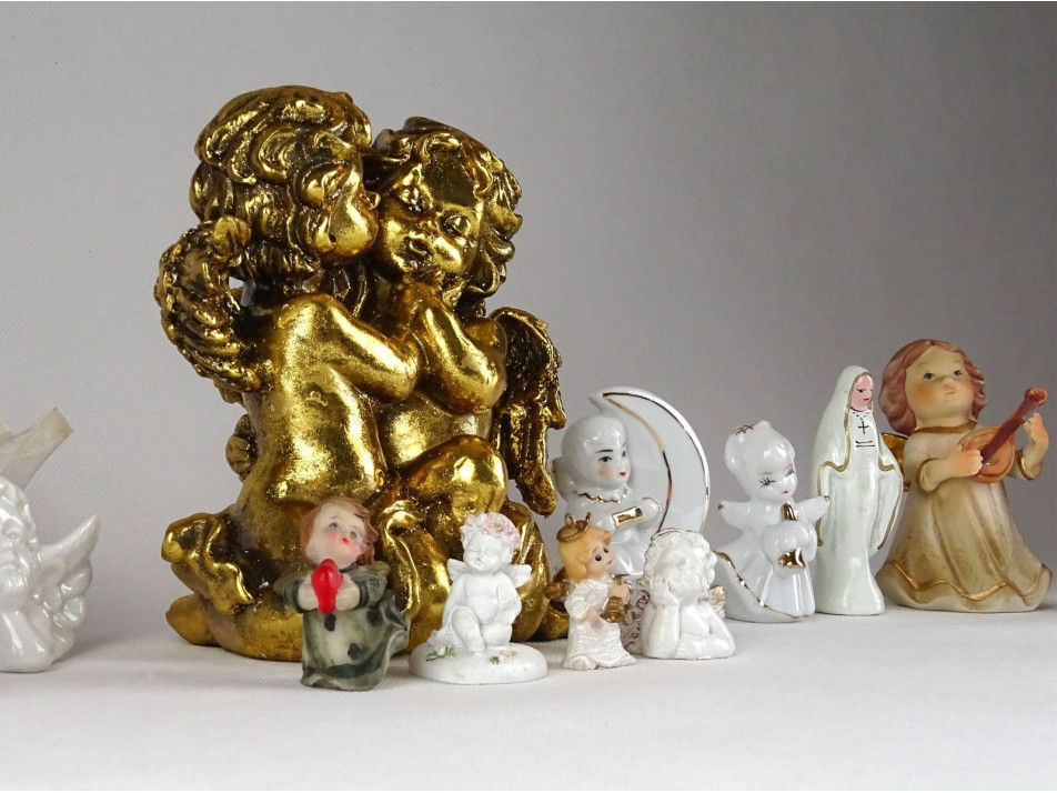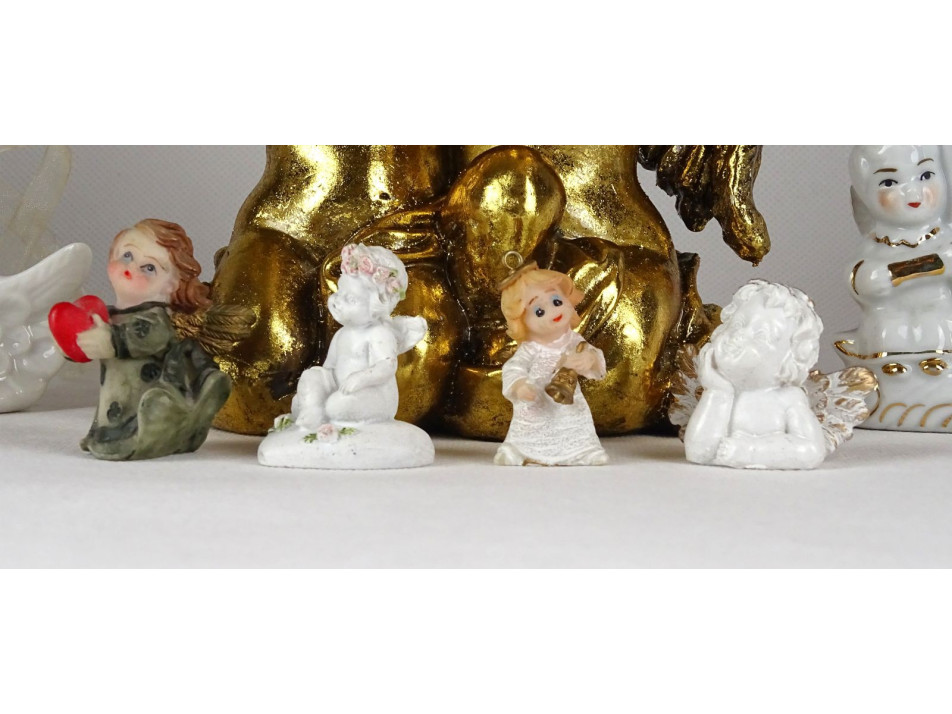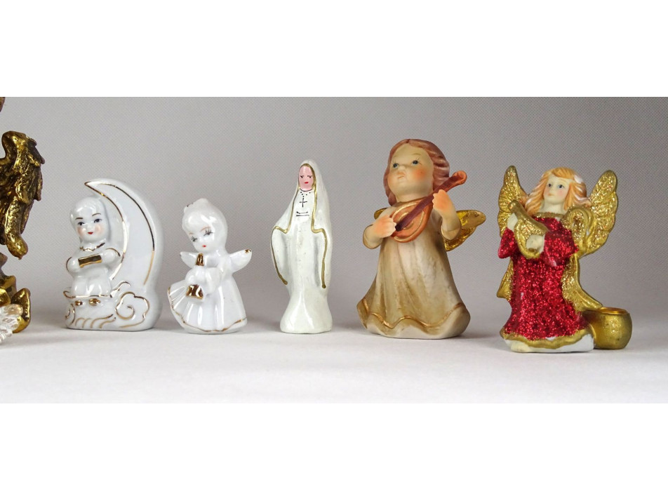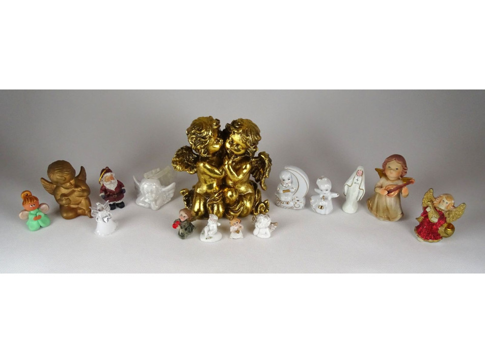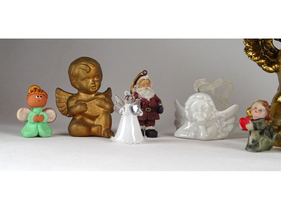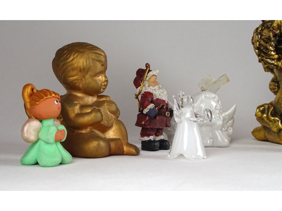 15 darab különböző angyal egyben. Zöme porcelán és kerámia, de van közöttük üveg is. Némelyek karácsonyfa dísznek is alkalmasak, akasztóval rendelkeznek. A gyűjtemény része egy Mária szobor és egy télapó is! Karácsonyi dekoráció.
