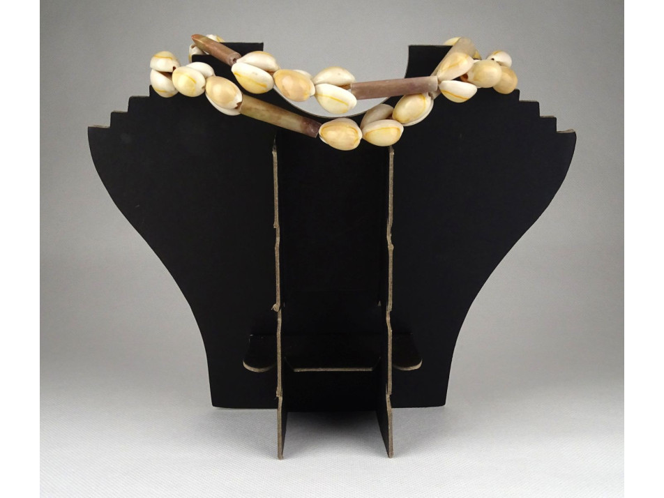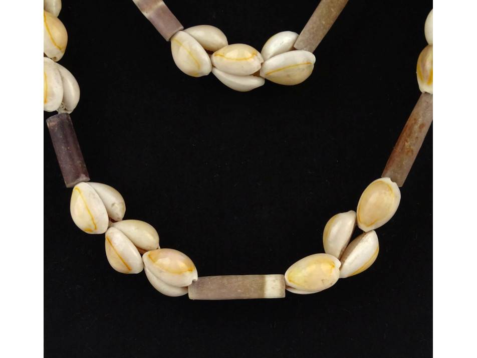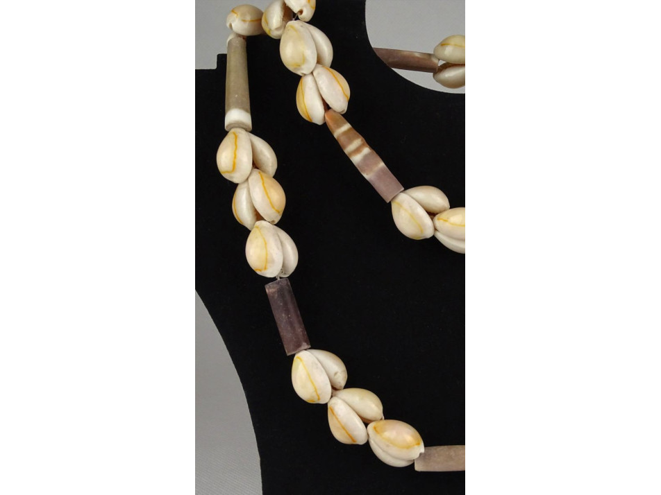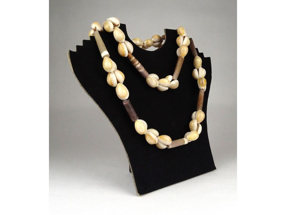 Tengeri kagylóból fűzött, csat nélküli, folyamatos hosszú női bizsu, nyaklánc, hibátlan állapotban.