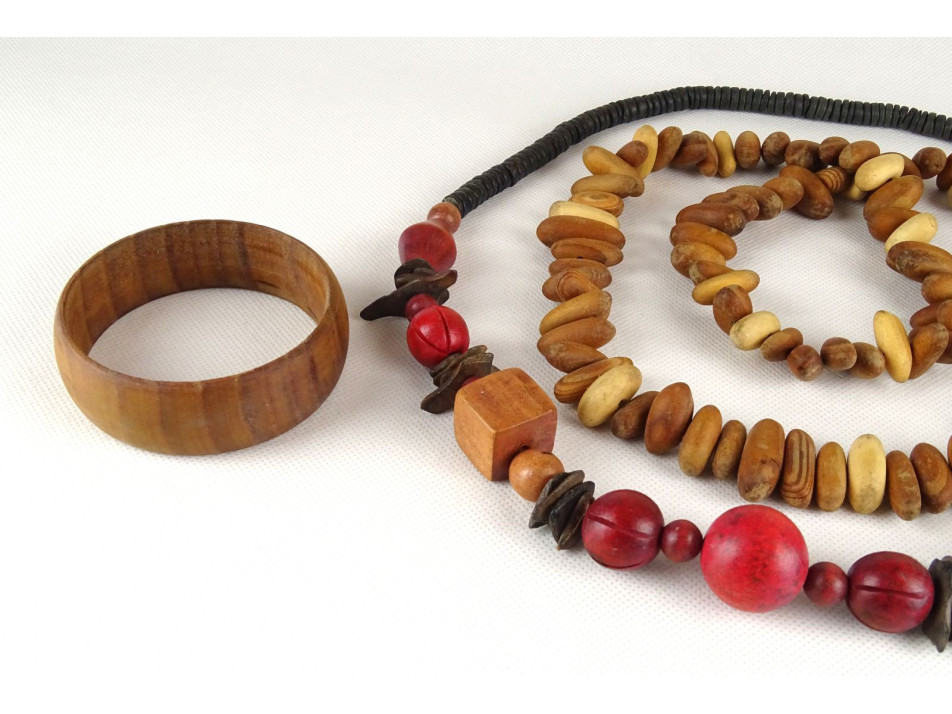 - 1 darab termésszerű, hosszúkás darabokból fűzött csat nélküli nyaklánc (Kerülete: 76 cm)