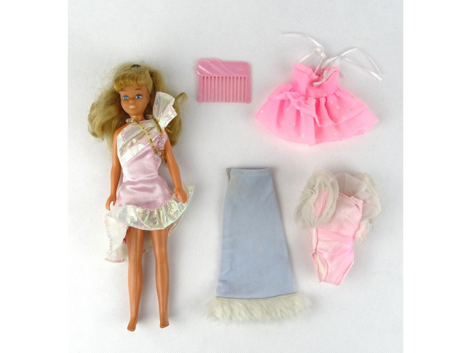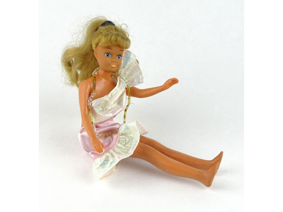 Jó állapotú Vintage Barbie baba igényes házilag készített egyberuhában. A karjai és lábai mozgathatóak, térdei különlegesen hajlíthatóak, csípője elfordítható.
