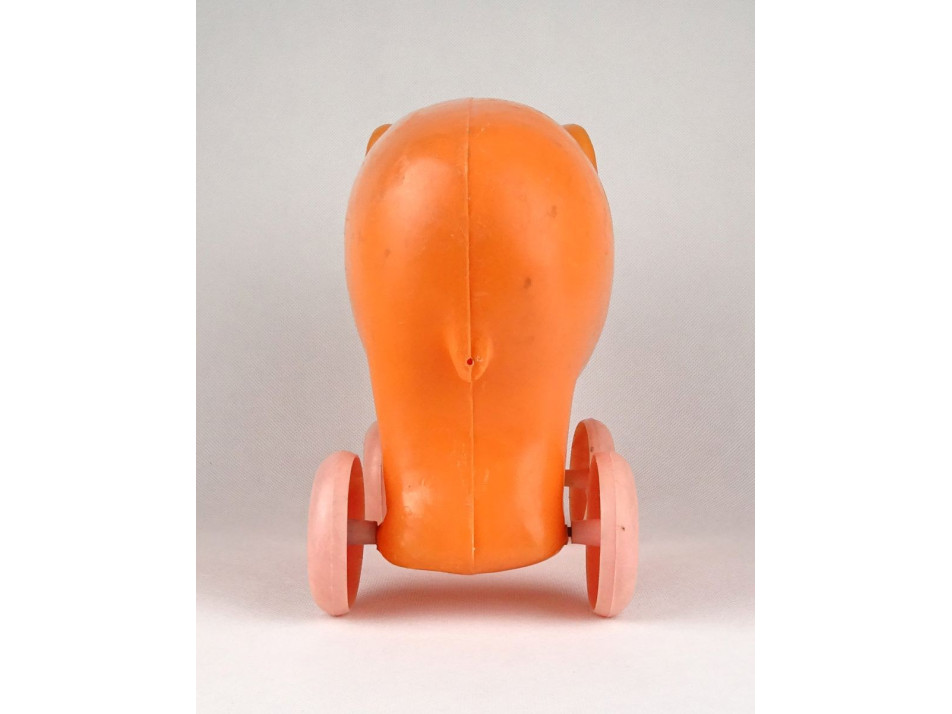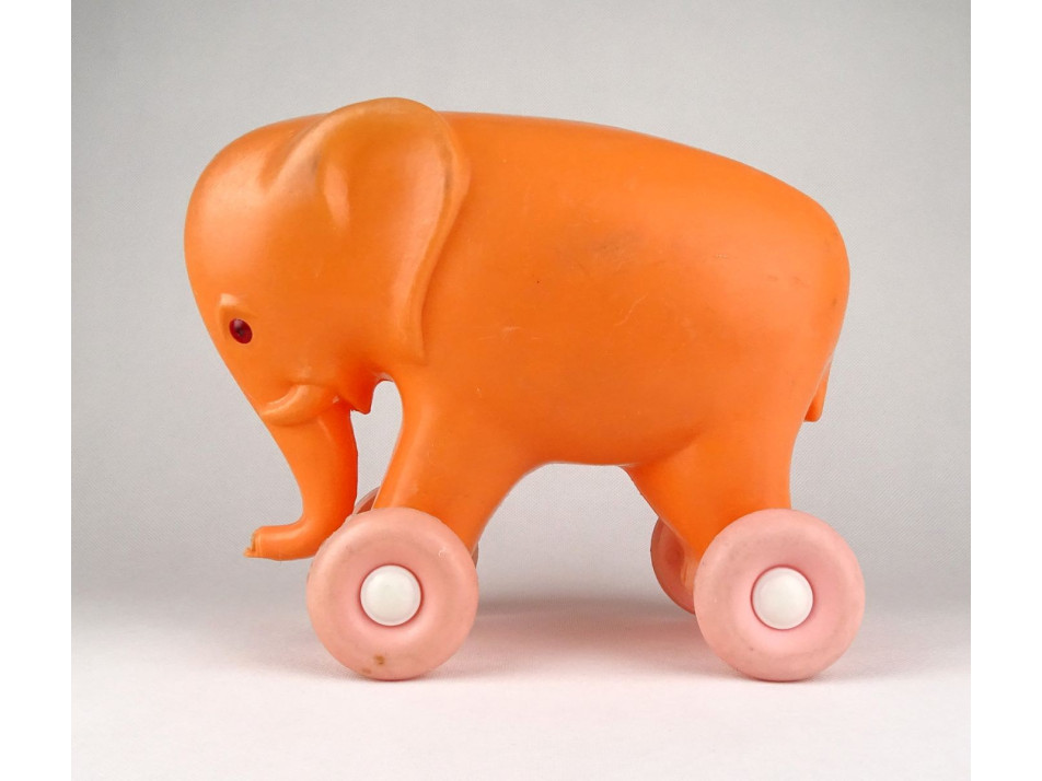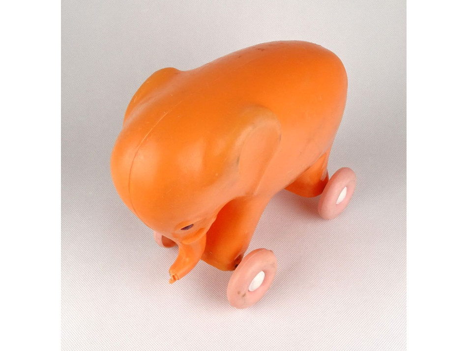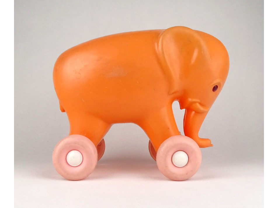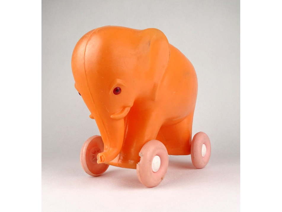 Régi, retro gurulós műanyag gyerekjáték elefánt az 1960-as, 70-es évekből. DMSZ fröccsöntött műanyag játék. Debreceni Műanyagipari Szövetkezet.