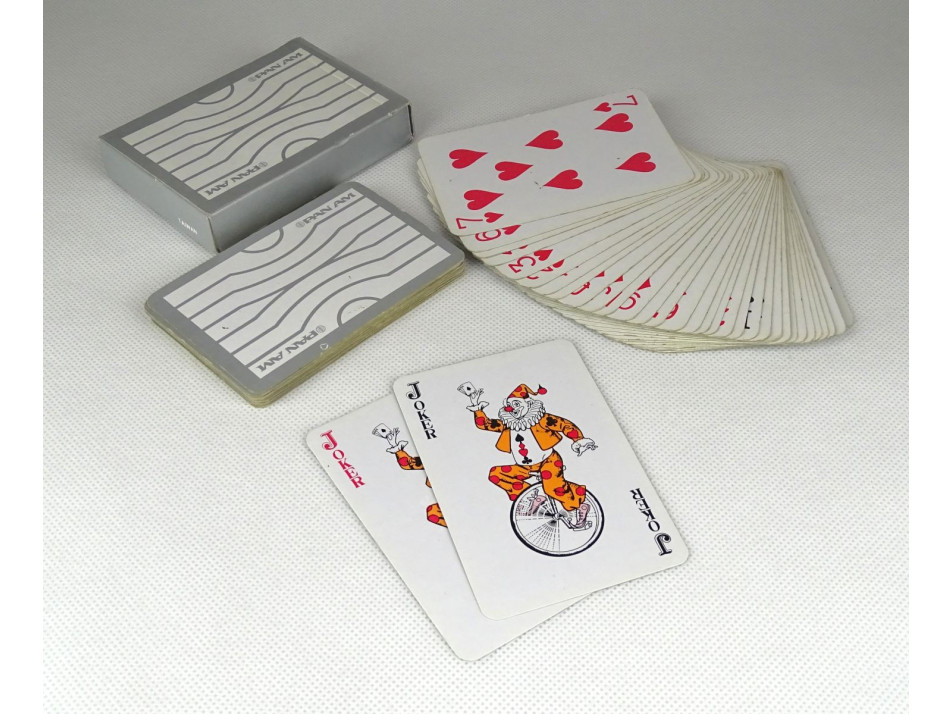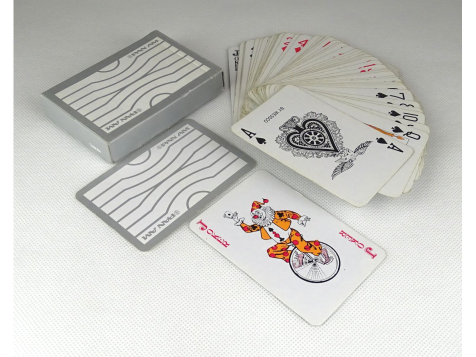 Hiánytalan francia kártya csomag. Egy pakli pókerkártya. Feliratok: PAN AM BY WESSCO