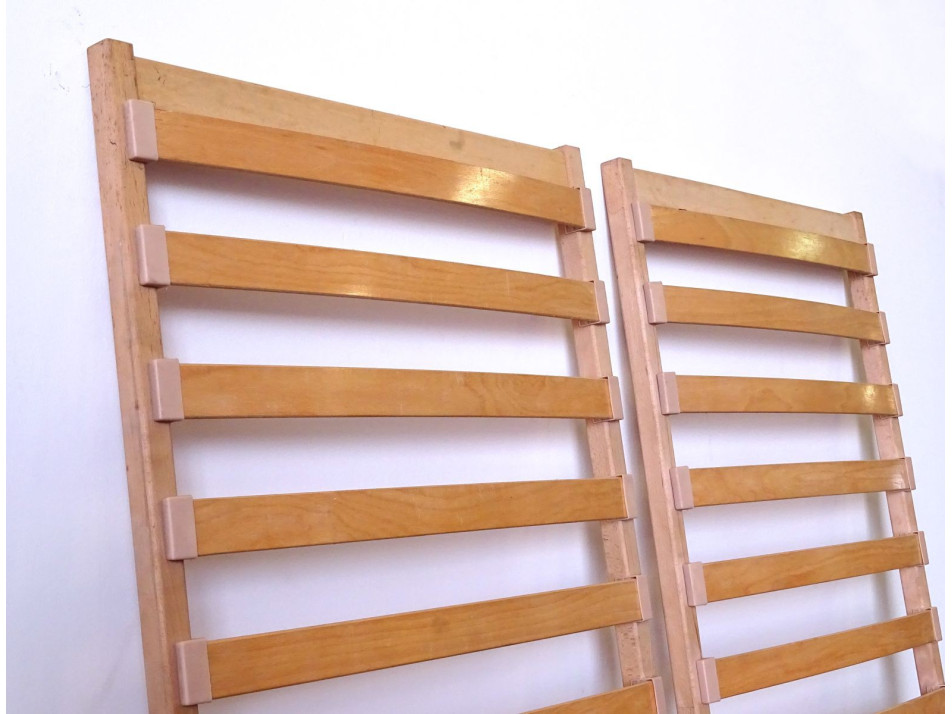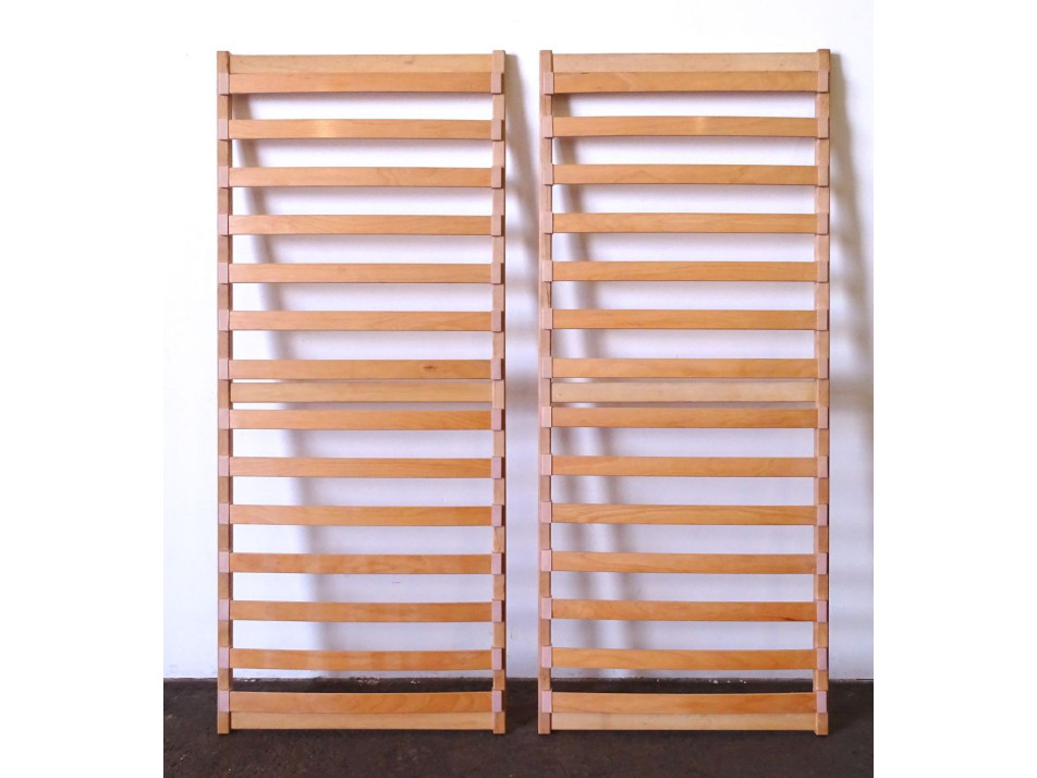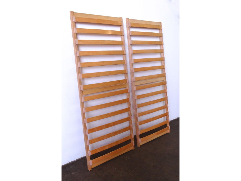 Masszív, nagy teherbírású fix keretes ágyrács, párban. 14 rácsosak. Rajta jelzés: 10873 12001