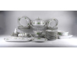 Hollóházi, Erika mintás, 6 személyes porcelán étkészlet kávés és süteményes 47 darab