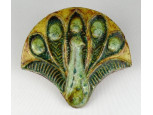 Iparművészeti mid century mázas samott páva falidísz 16 x 17.5 cm