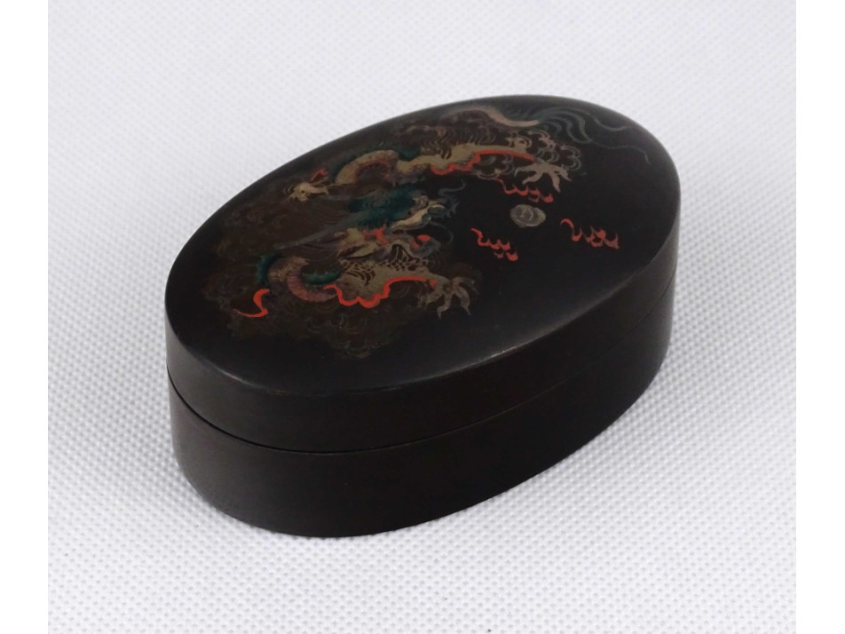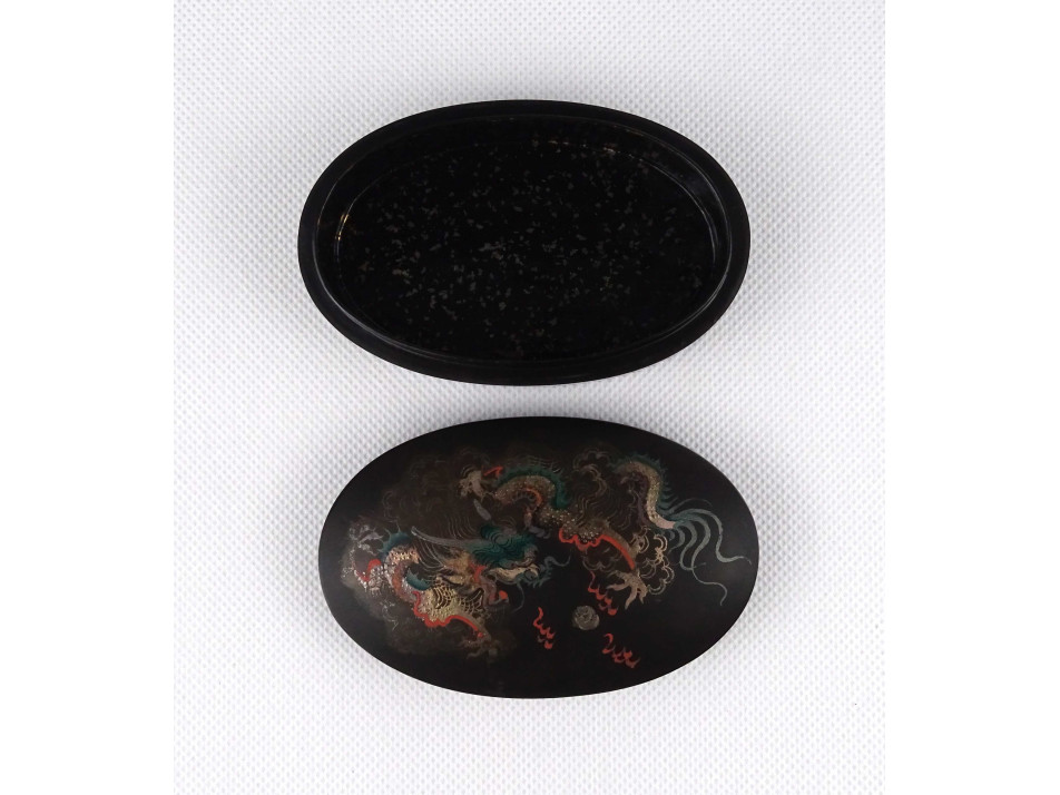 Régi keleti, sárkány mintás, ovális lakkdoboz