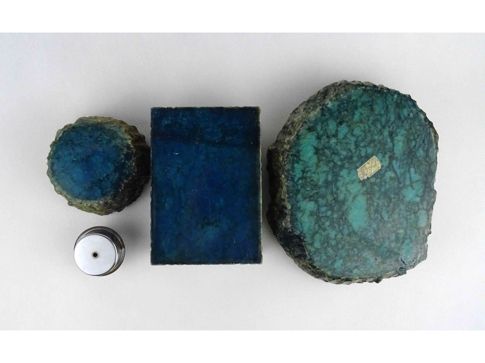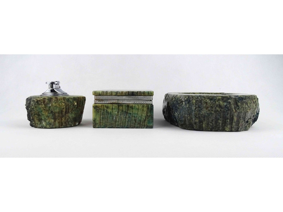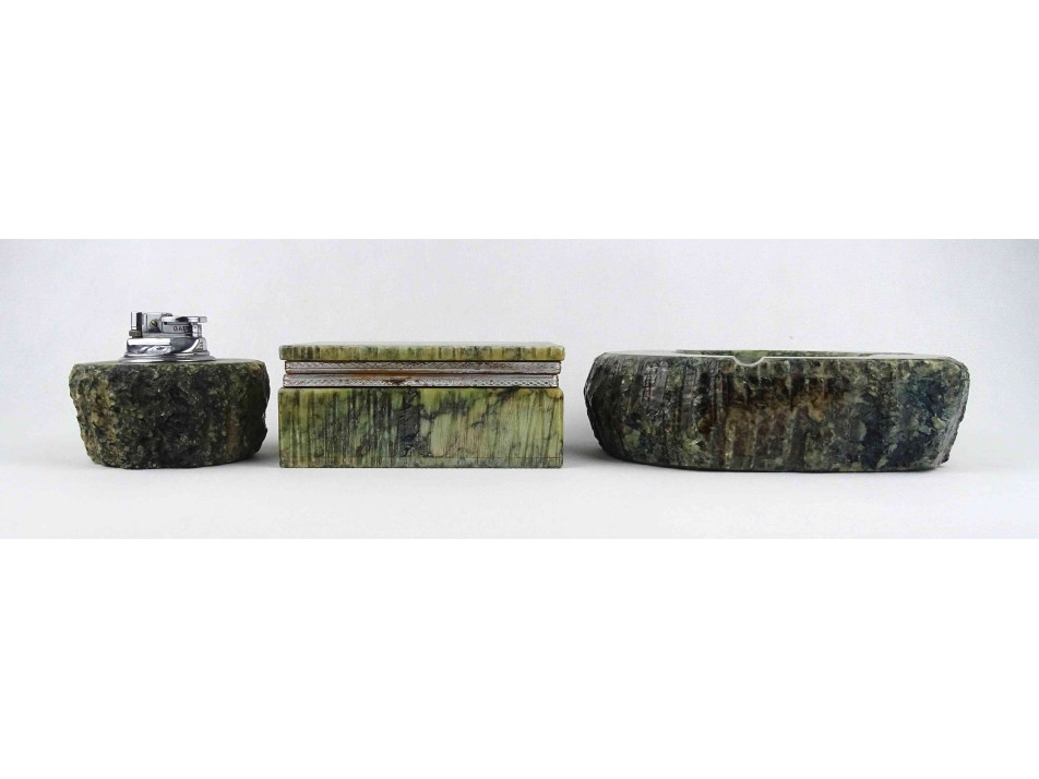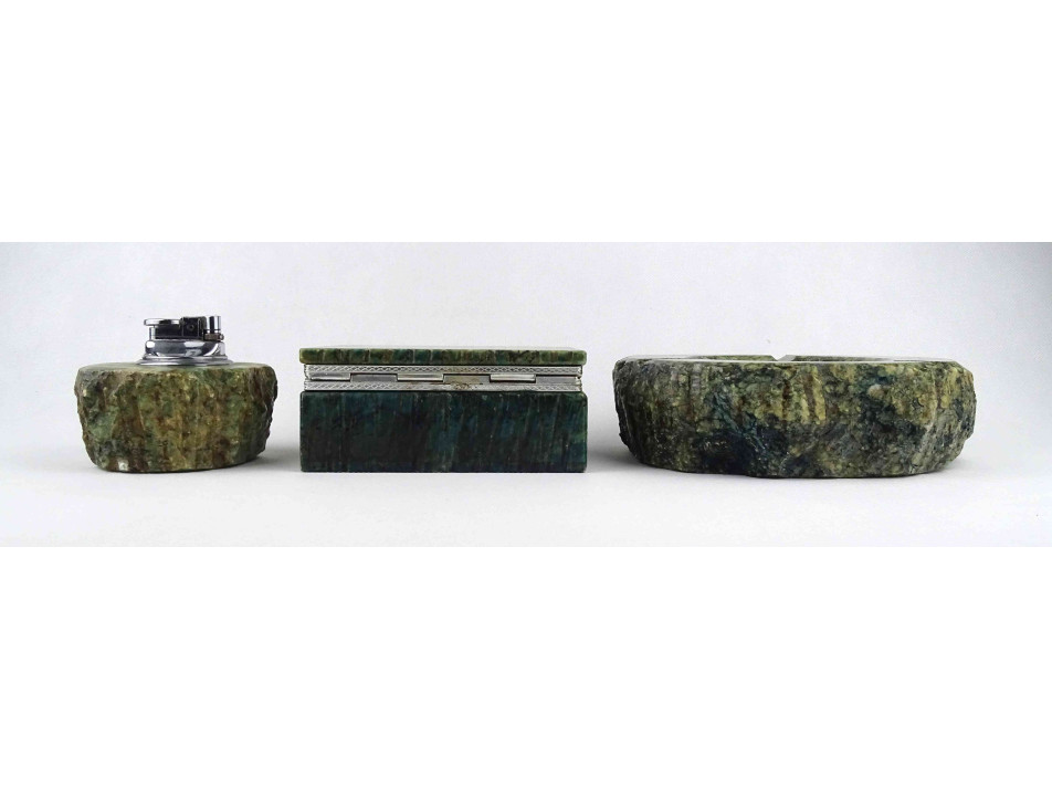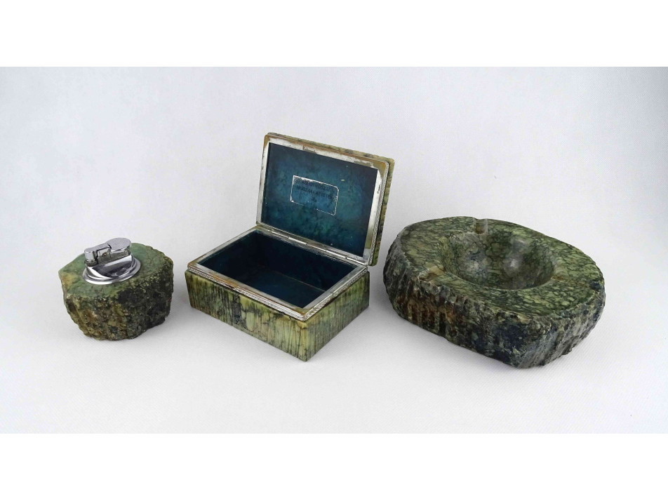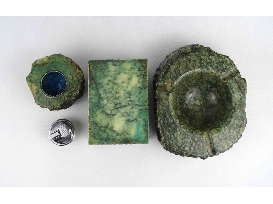 Szép állapotú, márványos mintával díszített ásványból készült, nagyméretű darabokból álló asztali dohányzó szett.