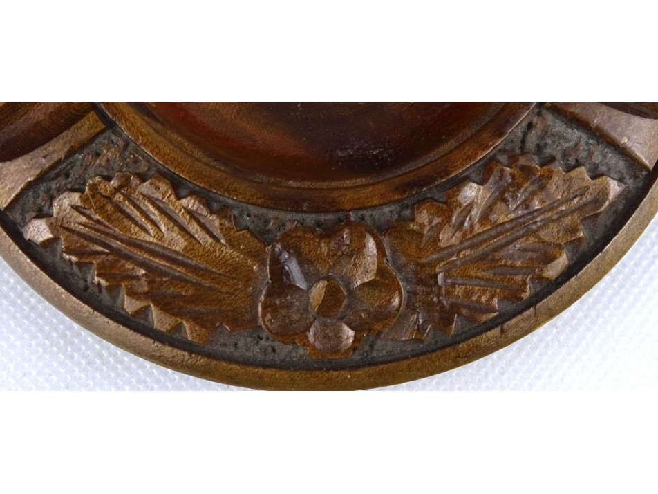 Régi virágmintás faragott fa hamutál 14.5 cm