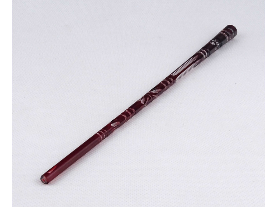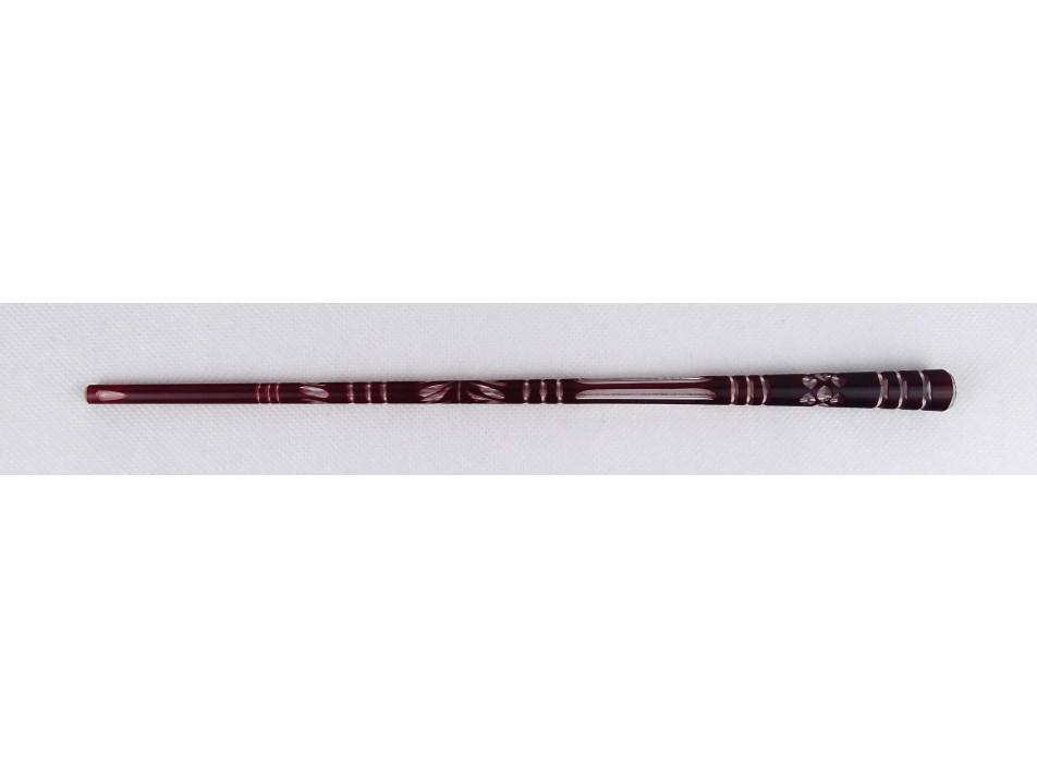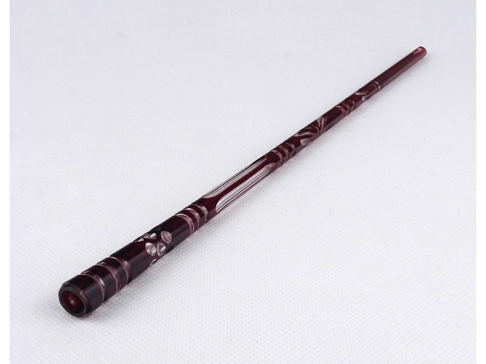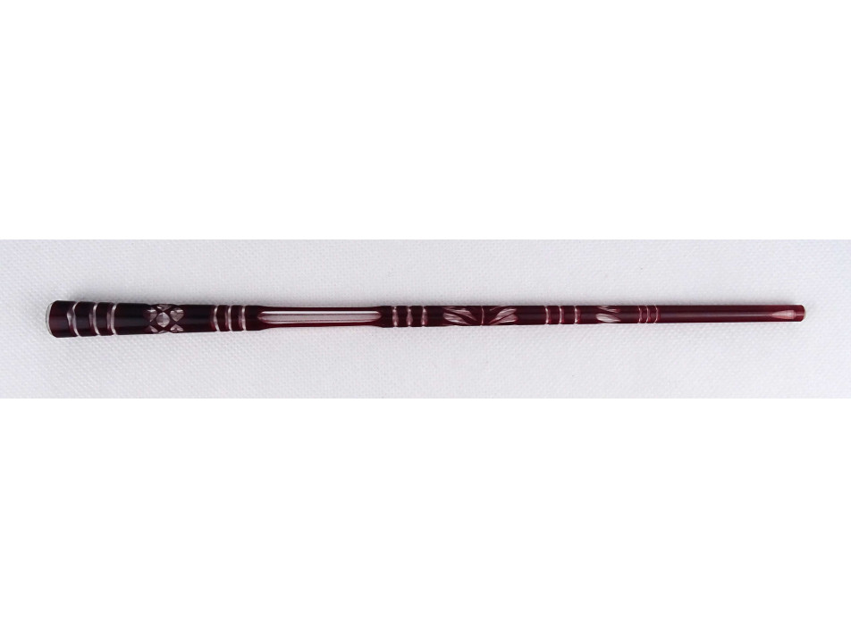 Régi, bordó színű, finom csiszolatokkal díszített, kristály üveg cigaretta szipka.