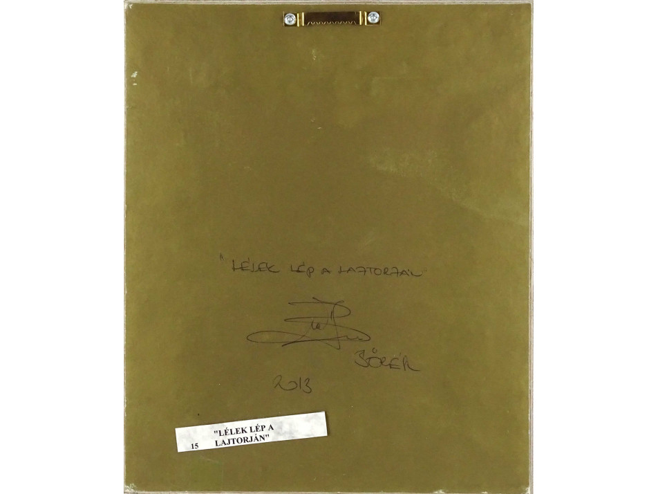 "Lélek lép a lajtorján" 2013 - jelzett festett bőrkép 17 x 12 cm