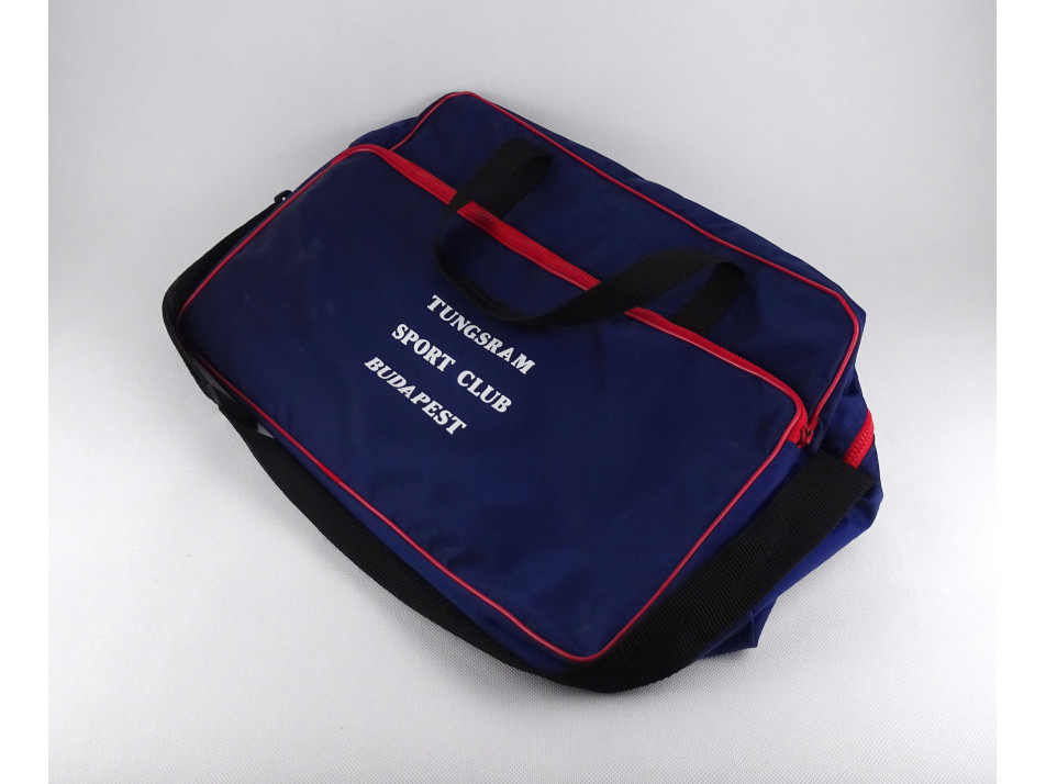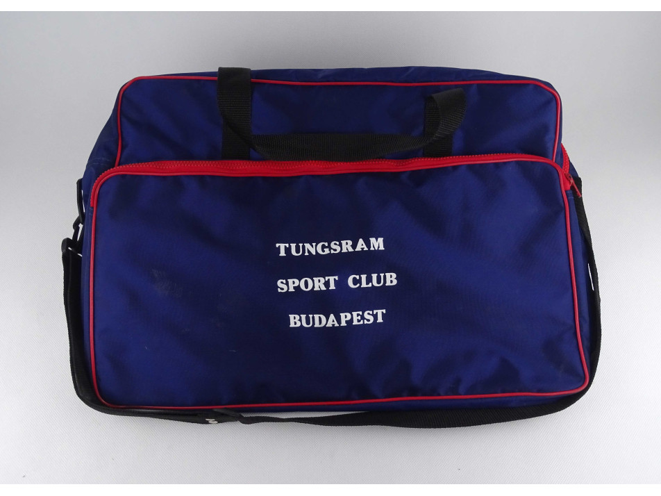 Retro, hibátlan állapotú válltáska, sporttáska, TUNGSRAM feliratú gyöngyvászon edző táska, kék és piros színekben.