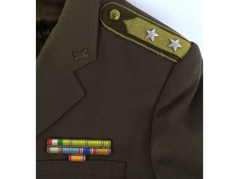 Régi, hibátlan állapotú magyar katonai uniformis, tűzér alezredesi egyenruha, zubbony, nadrág és tányérsapka egyben. Körülbelül M-es méret lehet. A zubbonyon több kitüntetés található.