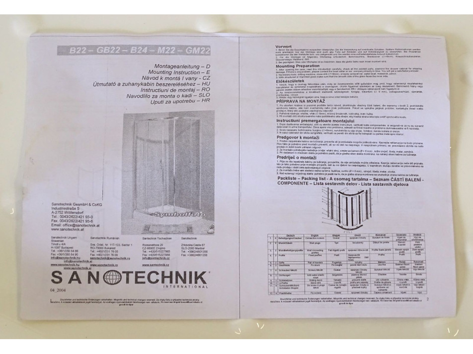 Sanodusch Sanotechnik zuhanykabin B2490W 90 x 90 x 180 cm
