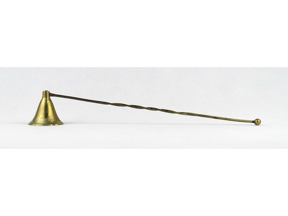 Régi, szép állapotú, nagyméretű, réz gyertyaoltó, koppintó, csavart nyéllel.