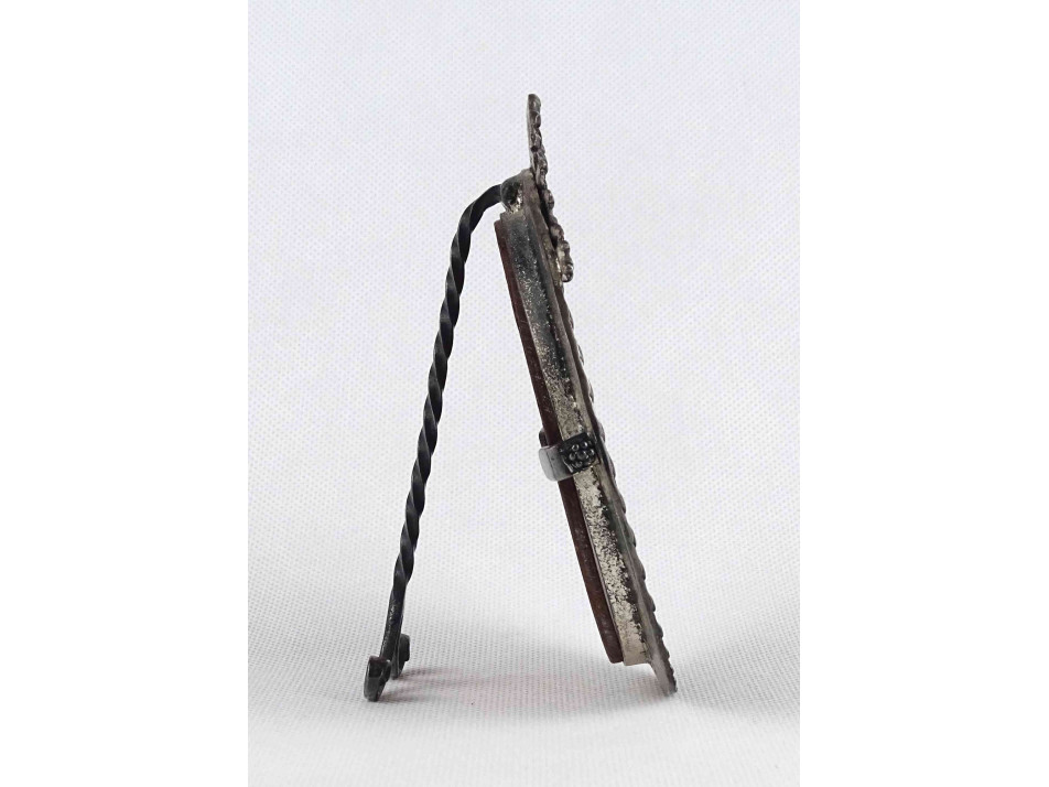 Hibátlan állapotú, dekoratív, ezüst színű masnis, ovális fém képkeret, fényképtartó keret. Fa hátlapja megvan, üveglapja nincs, hátulja támasztékkal rendelkezik.