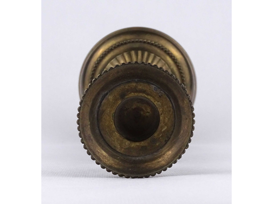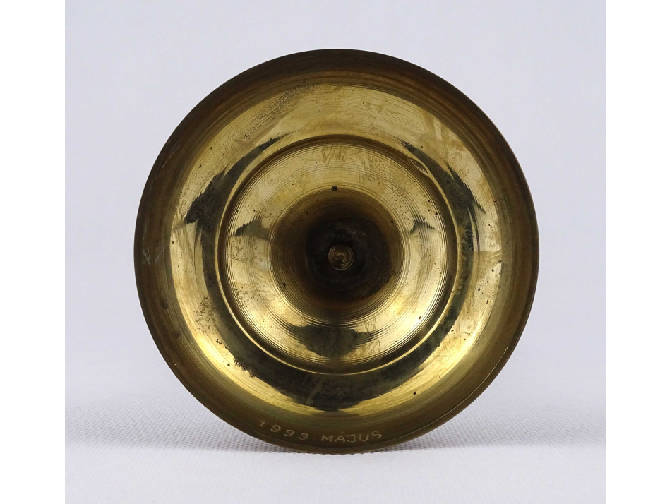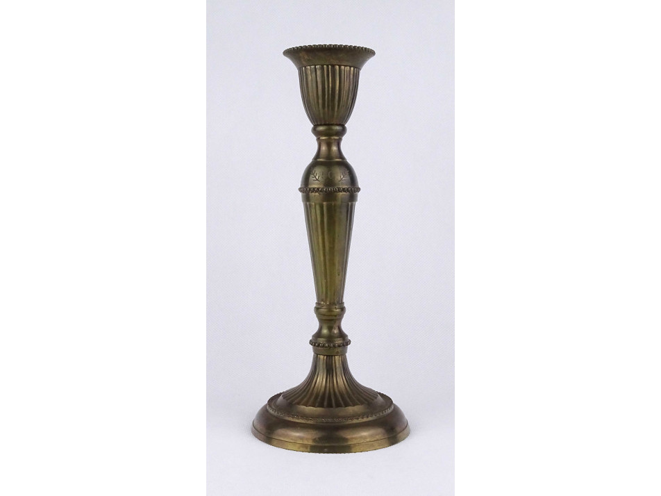 Régi, nagyméretű, antik stílusú, talpas, asztali, réz gyertyatartó.