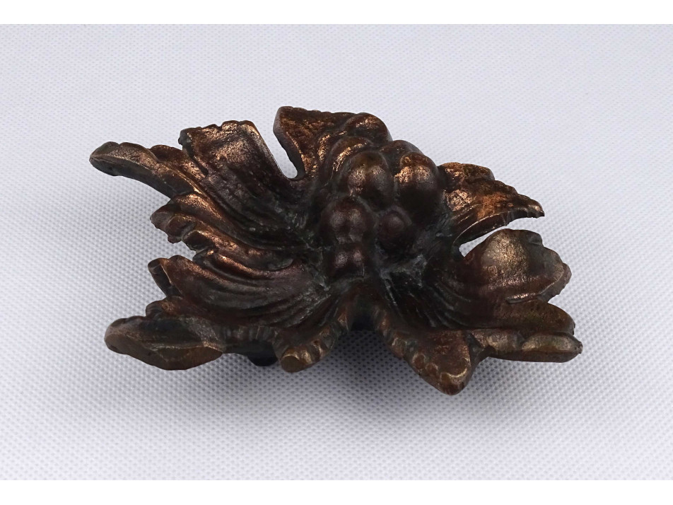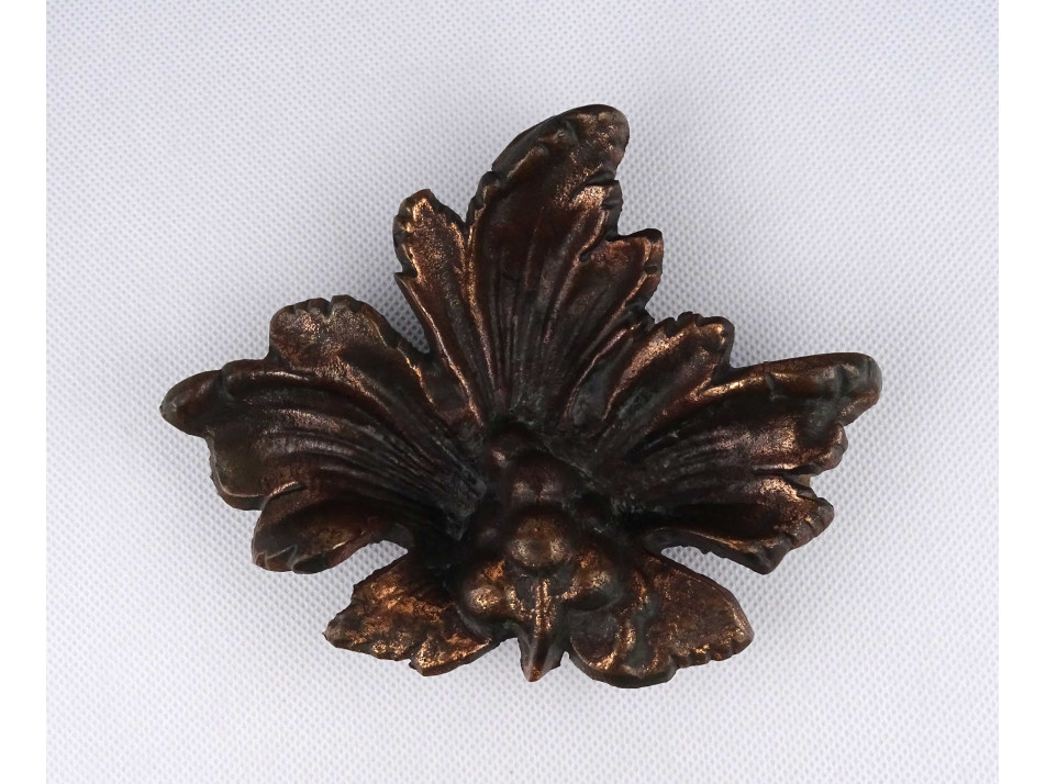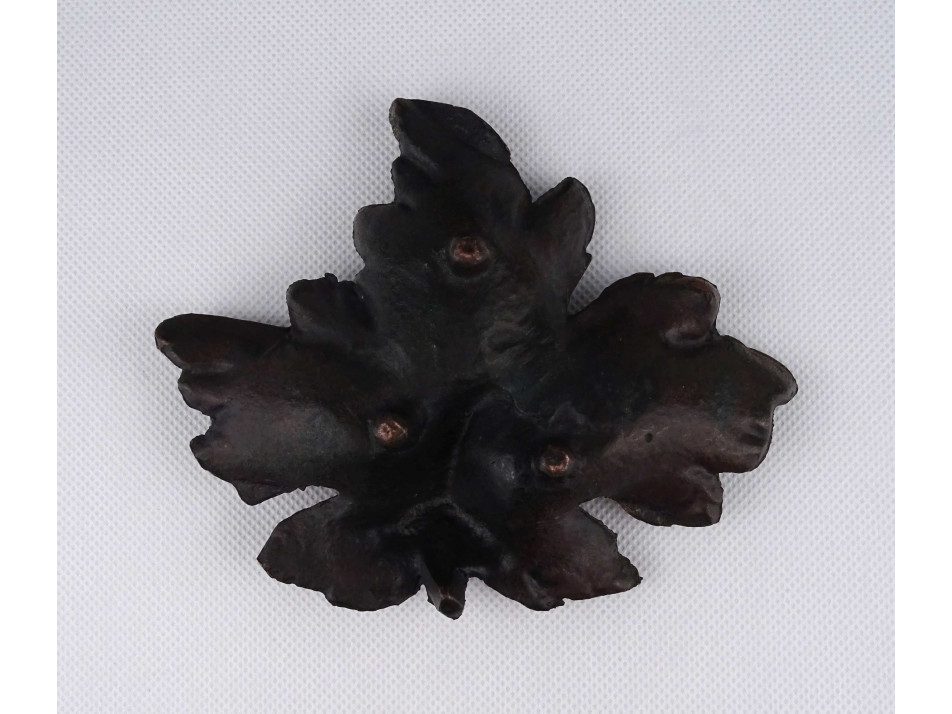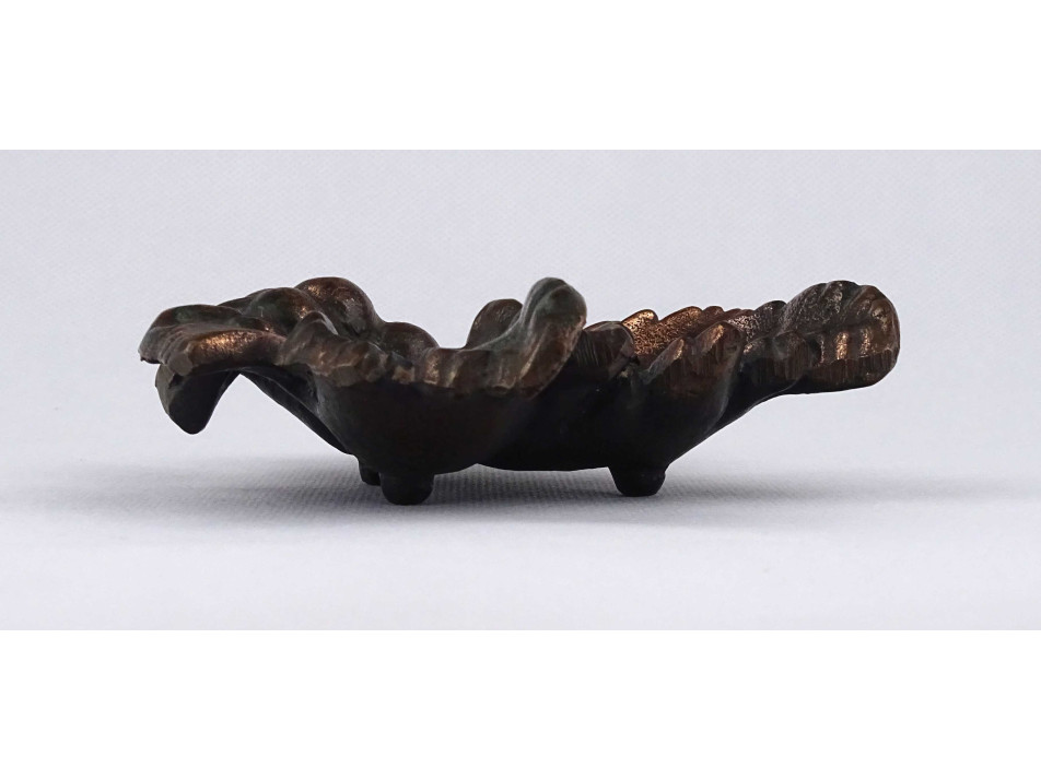 Régi, plasztikus levél alakú, bronzírozott fém hamutál.
