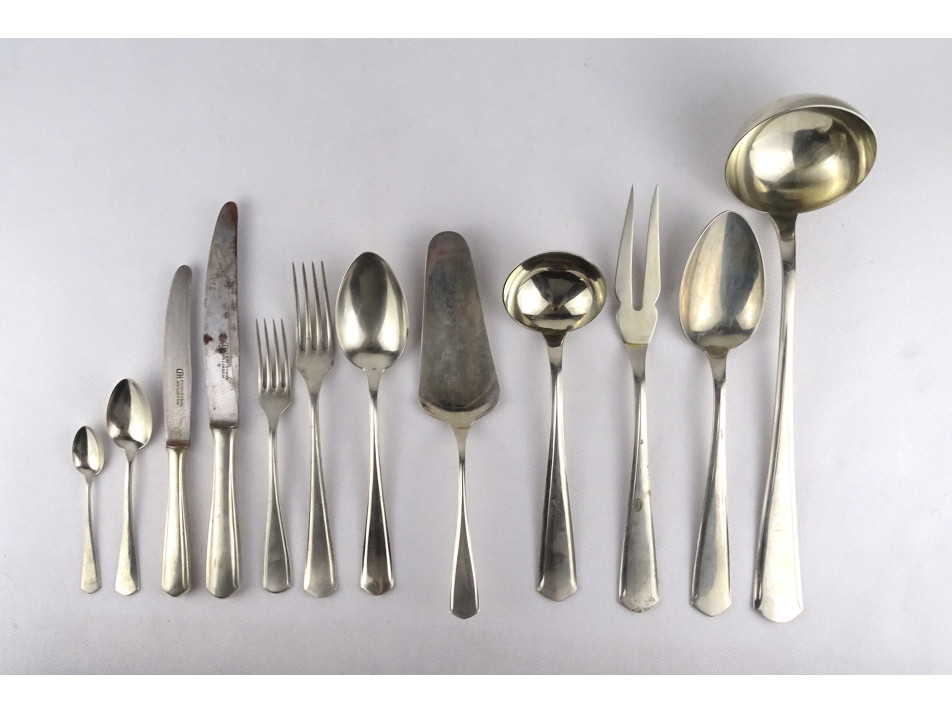 Régi ezüstözött alpakka evőeszköz készlet eredeti dobozában 47 darab