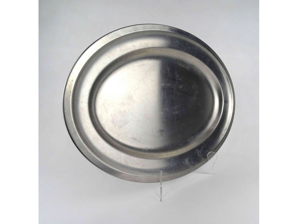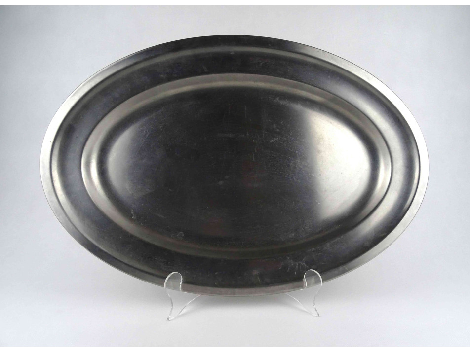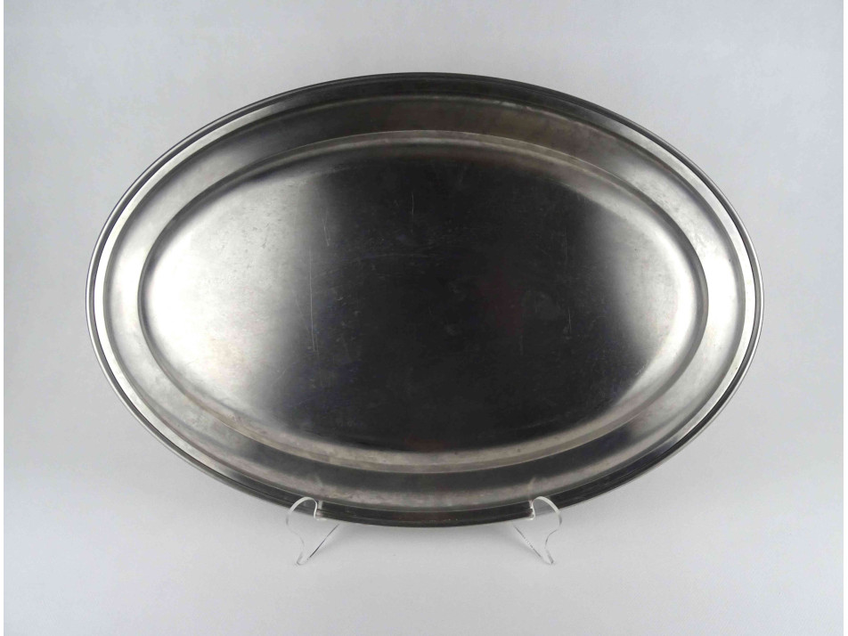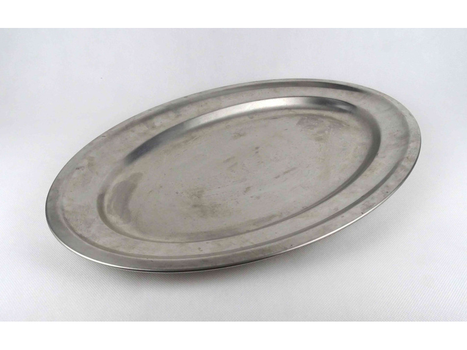 Régi hibátlan állapotú, vastag, magas peremű, jelzetlen ovális fém tálca esetleg pecsenyéstál.