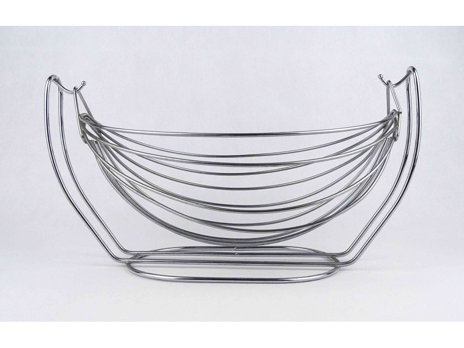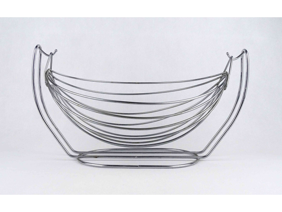 Nagyméretű, modern inox asztalközép kínáló, gyümölcskosár hinta 31 x 17 cm