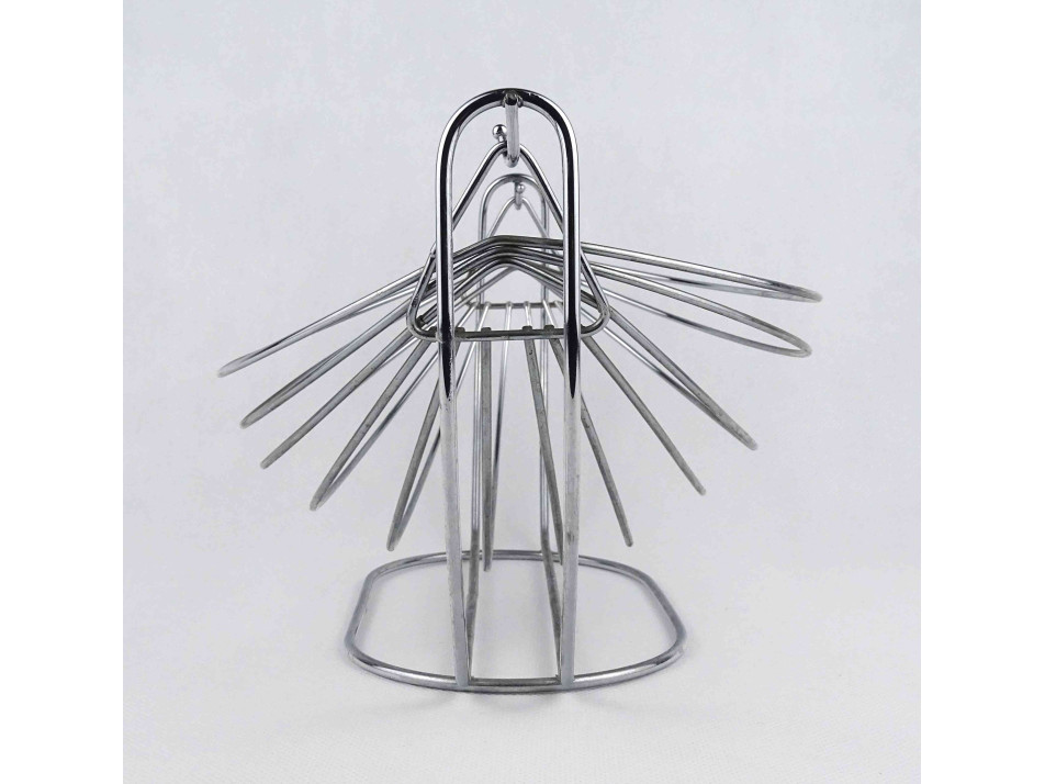 Nagyméretű, modern formájú, design, inox, rozsdamentes acélból készült, középen hintaszerűen mozgatható asztalközép kínáló, gyümölcskínáló tál, gyümölcskosár hinta.