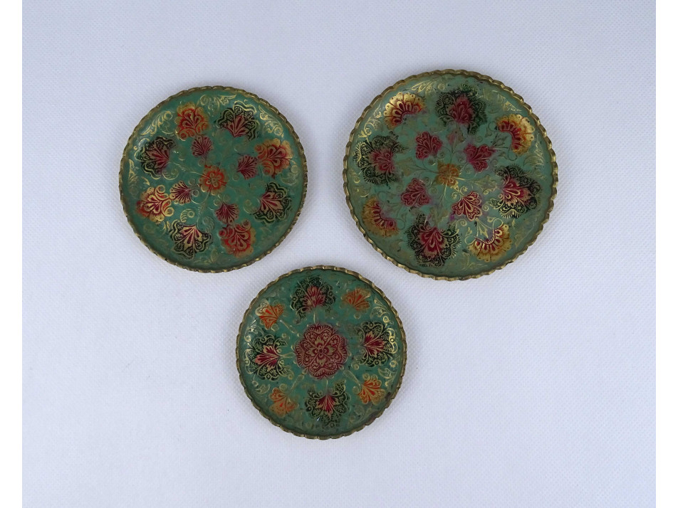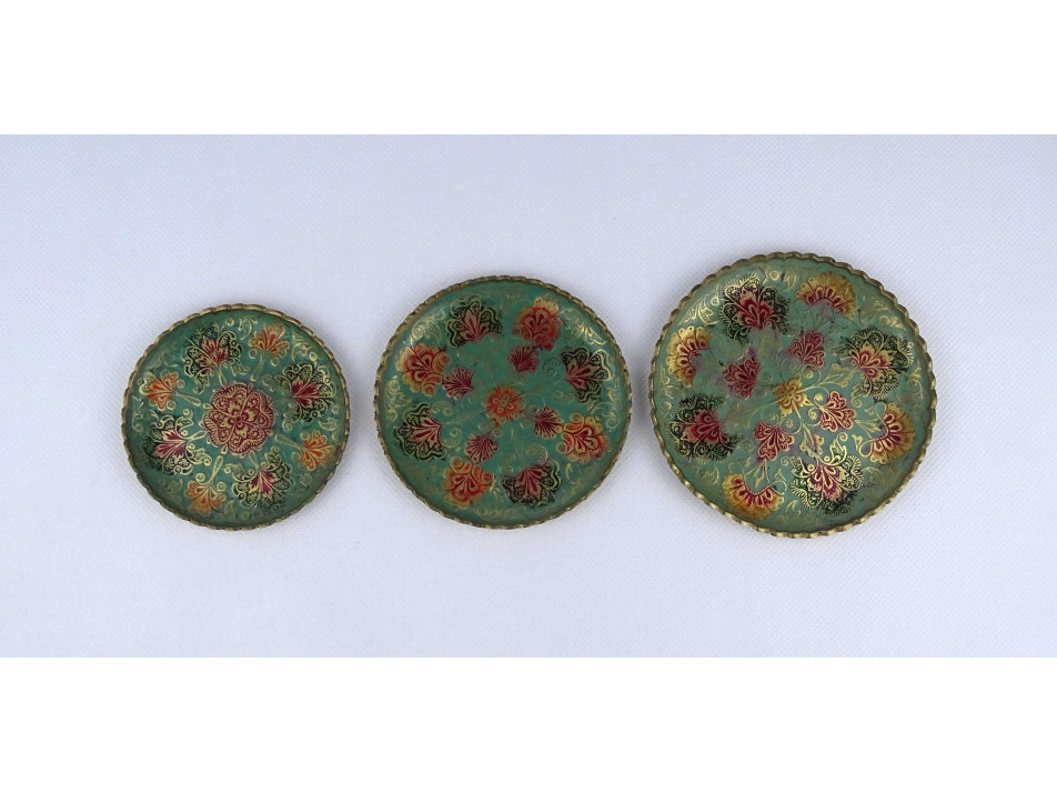 3 darabos kisméretű Indiai festett réz dísztányér szett