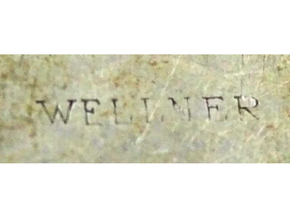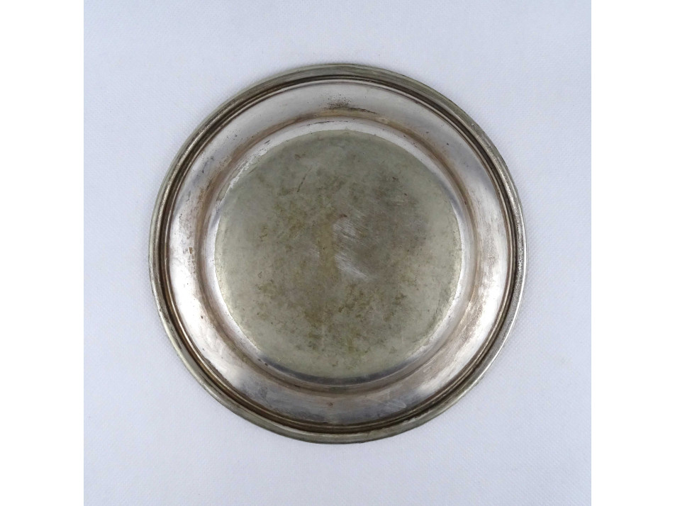 Régi, jelzett, ezüstözött alpakka lapos tányér, az 1900-as évek elejéről. Kávéházi relikvia. Ezüstözése kopottas. Alján jelzés: WELLNER