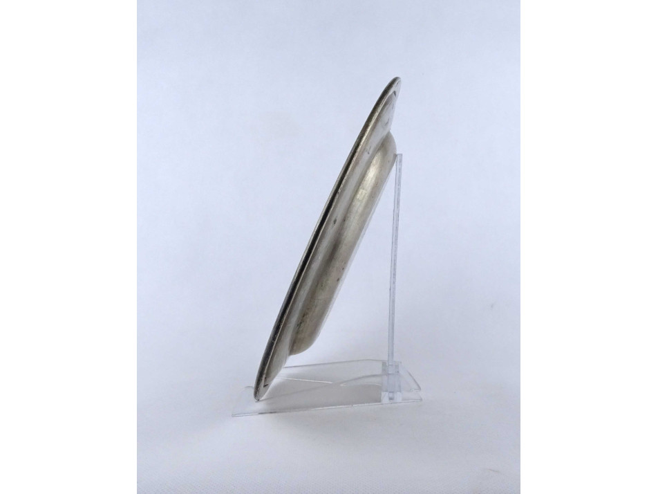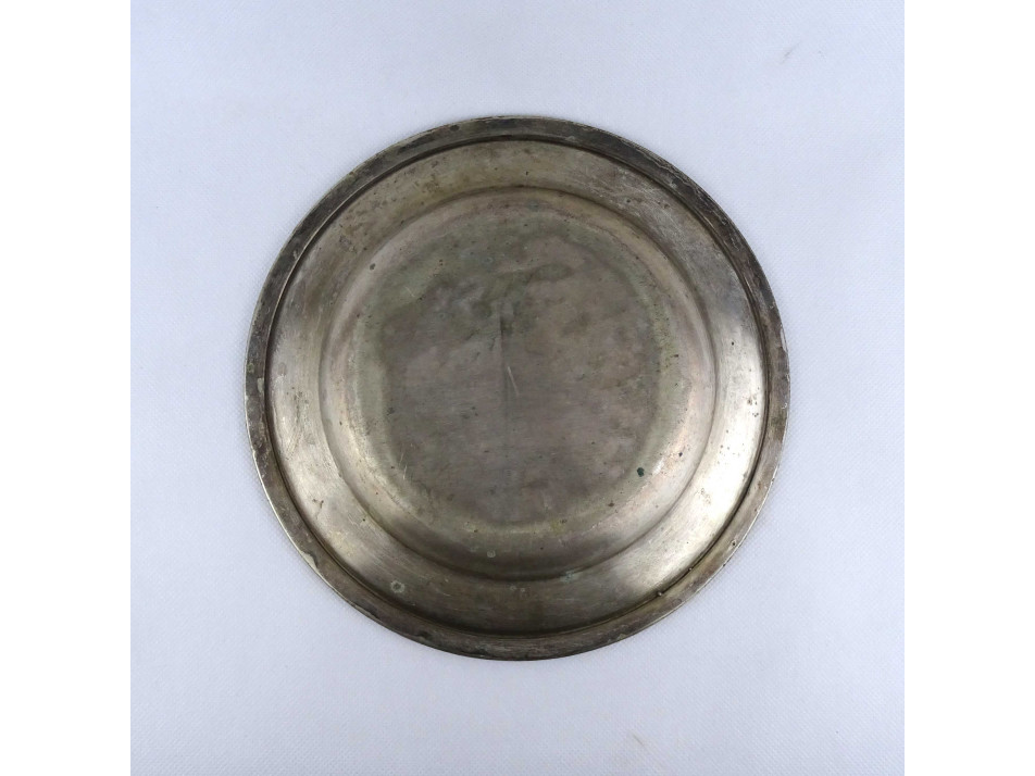 Régi, jelzett, ezüstözött alpakka lapos tányér, az 1900-as évek elejéről. Kávéházi relikvia. Ezüstözése kopottas.