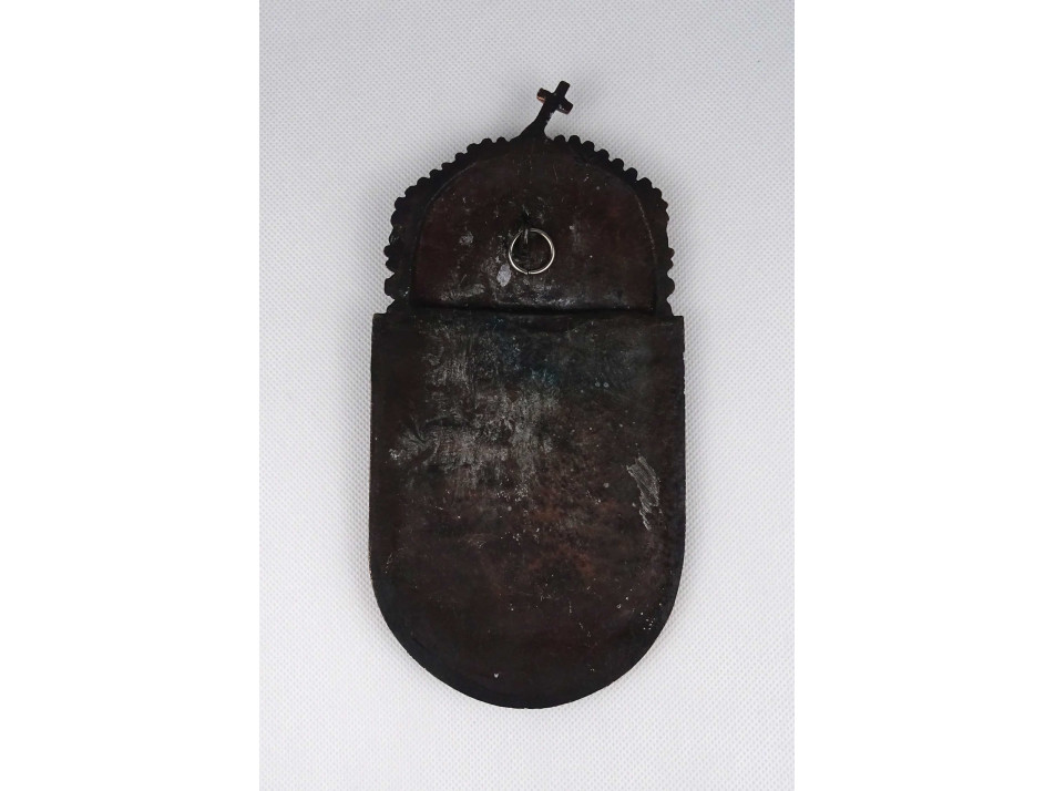 Régi gyöngyház betétes keleti réz váza 20.5 cm
