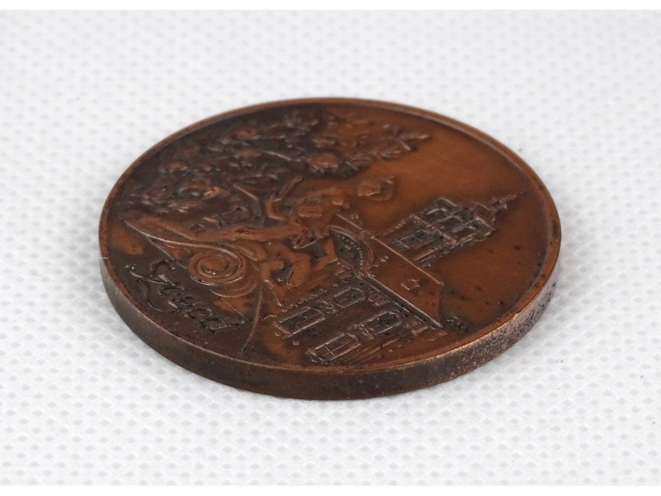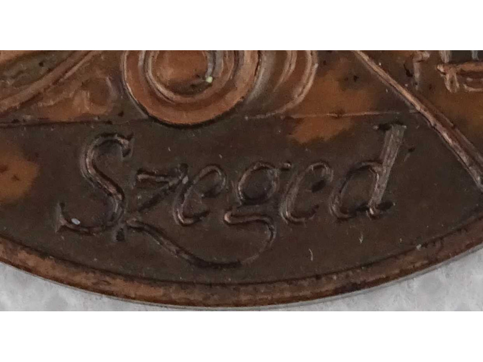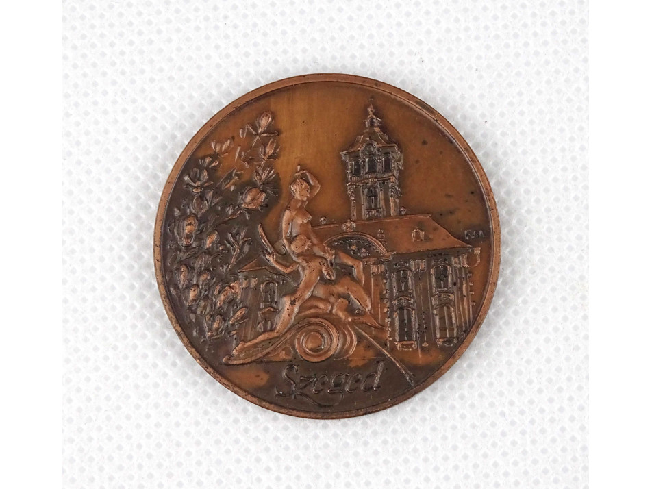 Régi, jelzett Fritz Mihály egyoldalas bronz plakett, emlék érme. Rajta a szegedi Széchenyi tér és a városháza látható. Jelezve jobbra középen FM.