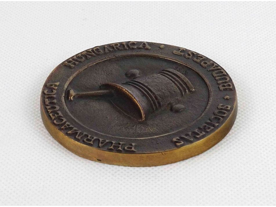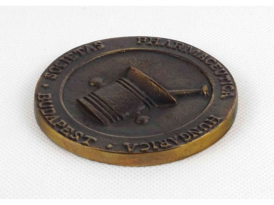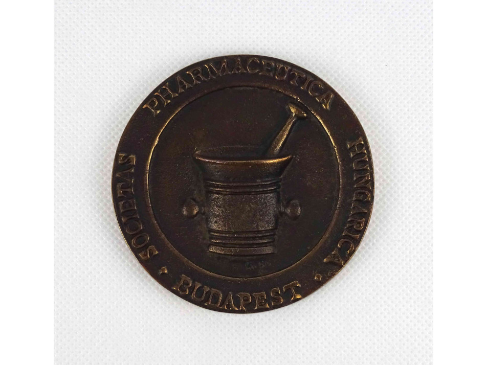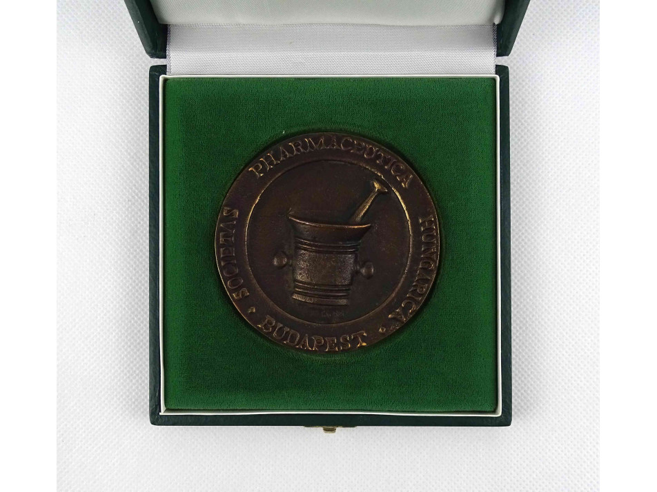 Magyar Gyógyszerészeti Társaság kétoldalas réz plakett díszdobozban